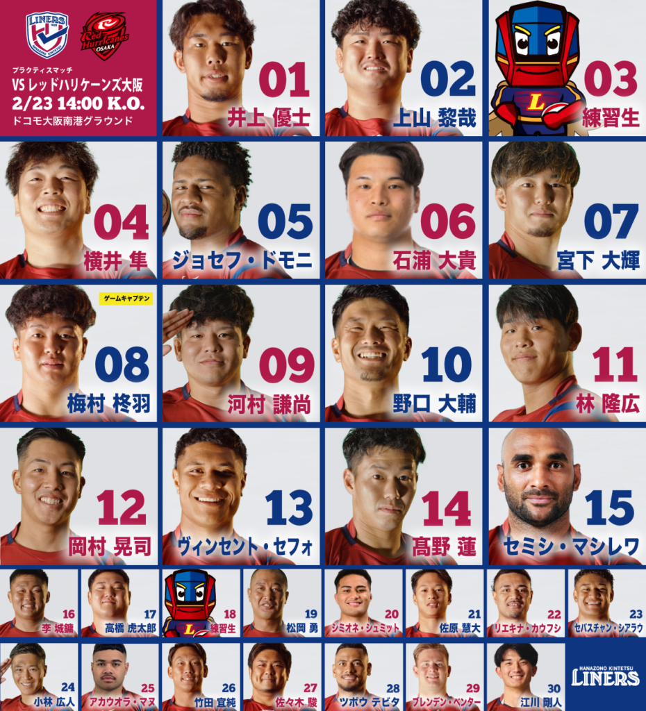 2月23日(金祝)14:00 K.O. vsレッドハリケーンズ大阪