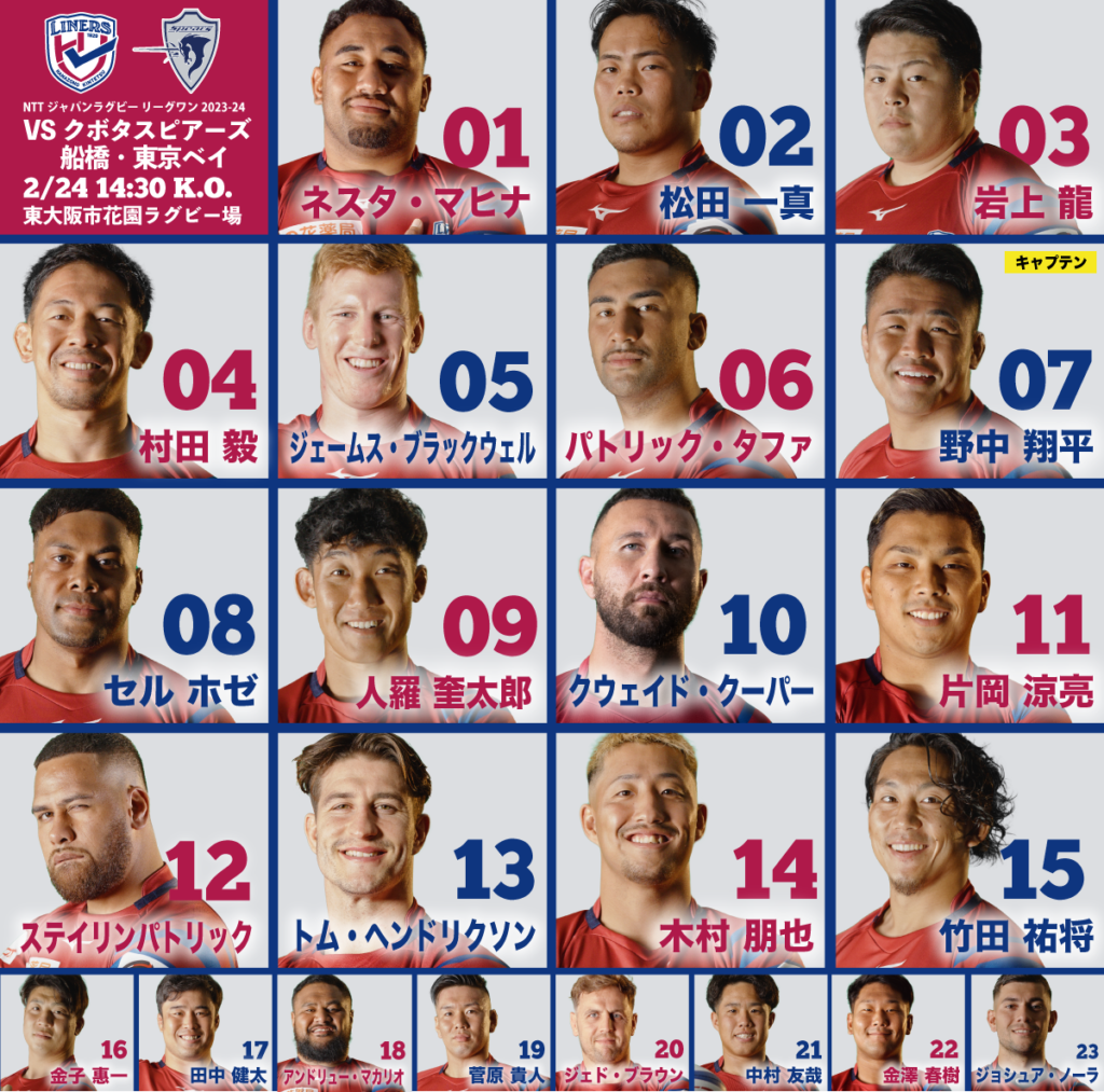2月24日(土)14:30 K.O. vsクボタスピアーズ船橋・東京ベイ