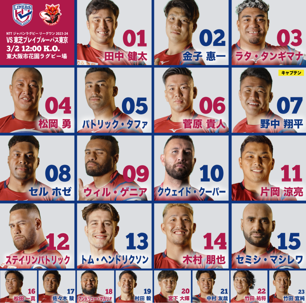 来る3月2日(土)12時00分キックオフのNTT JAPAN RUGBY LEAGUE ONE 2023-24 Div.1 第8節東芝ブレイブルーパス東京戦のご案内をいたします。
