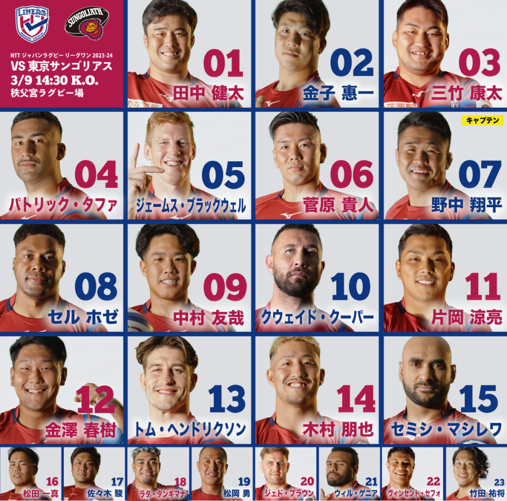 3月9日(土)14:30 K.O. vs東京サンゴリアス