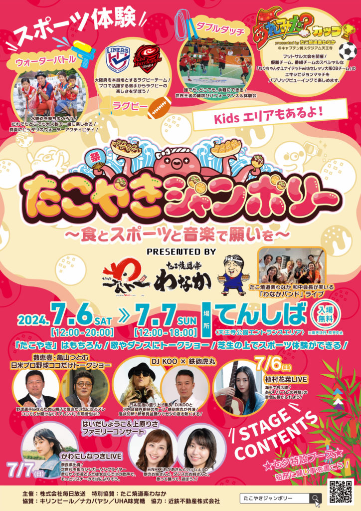2024年7月6日(土)・7日(日)、てんしばにて開催される「たこやきジャンボリー」にライナーズの選手が参加し、ラグビー体験を実施します。ぜひご来場ください。