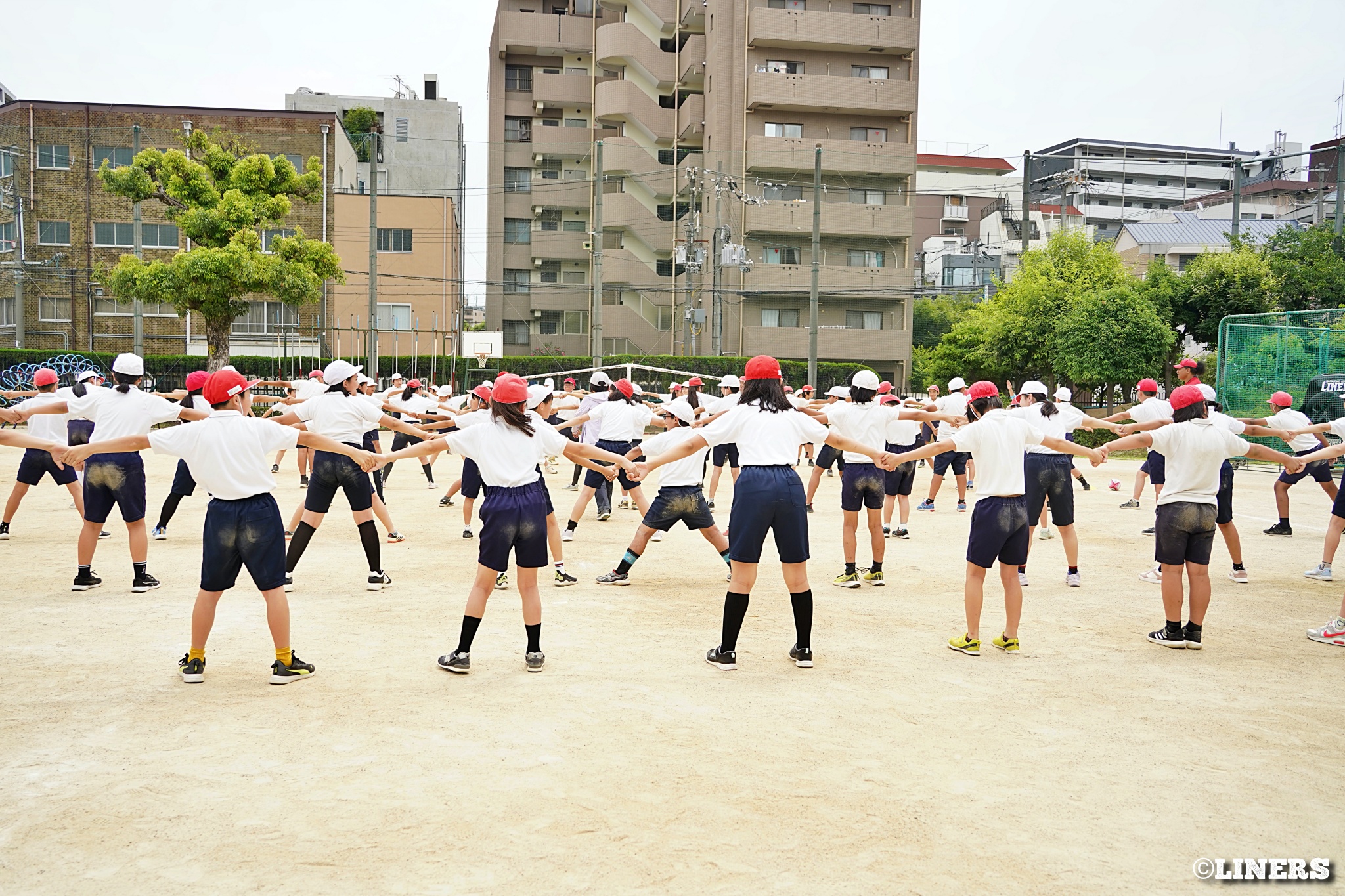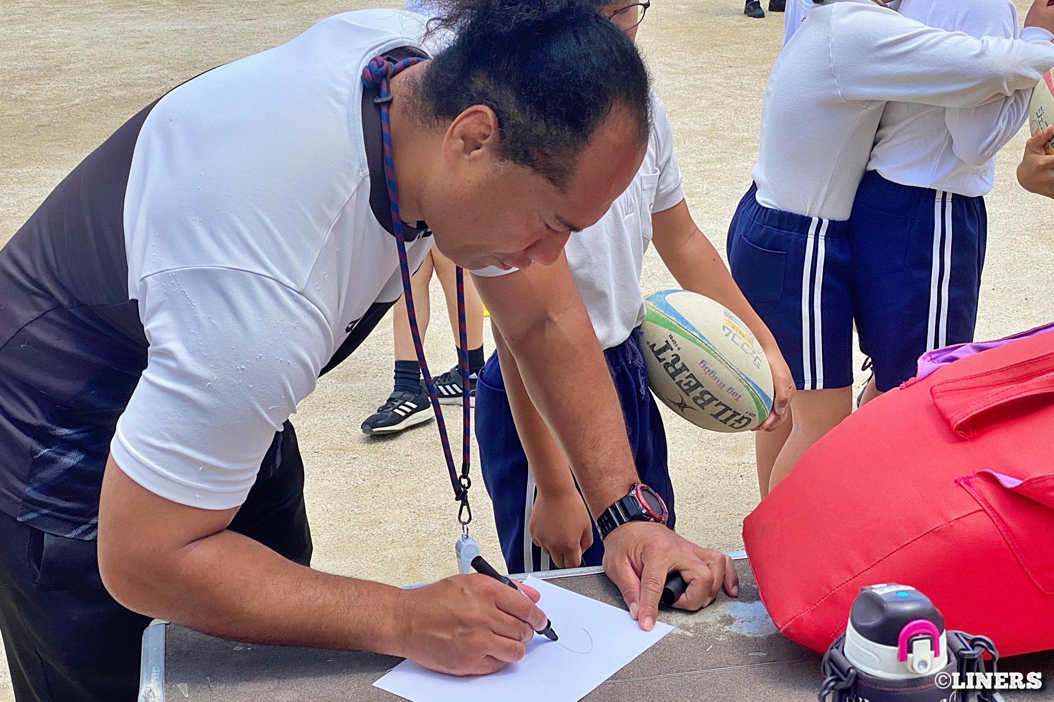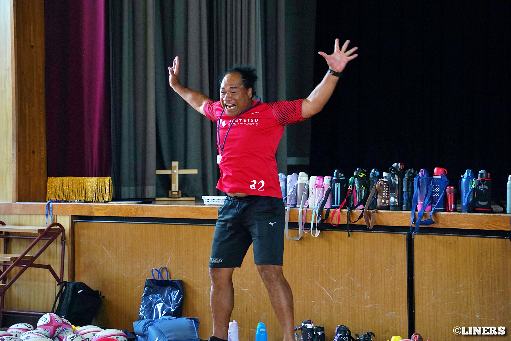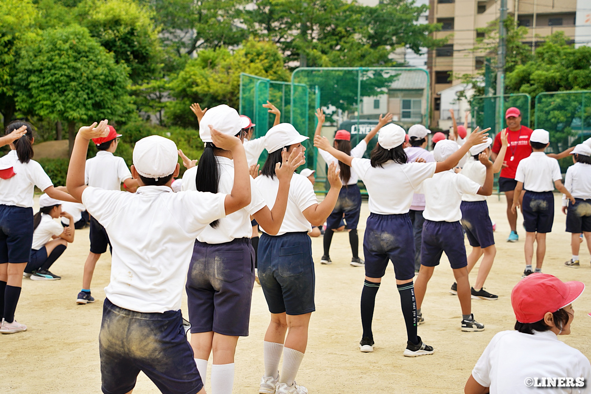 茨田南小学校の6年生にラグビー体験を行いました。この日から普及活動用のラグビーボールを新調。ライナーズのマスコットキャラクター「ライナマン」とSNS広報担当の「ラビナーくん」があしらわれたボールです。新品のボールで児童のみなさんもテンションMAX。いつも以上にラグビー体験が盛り上がりました。