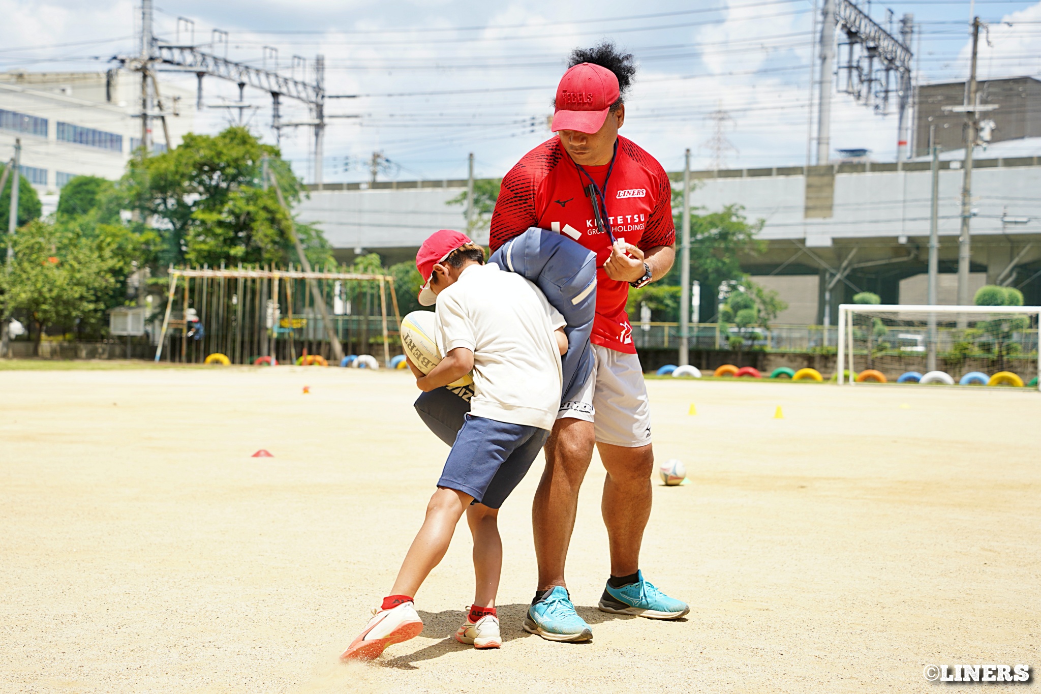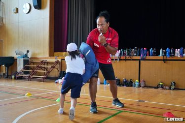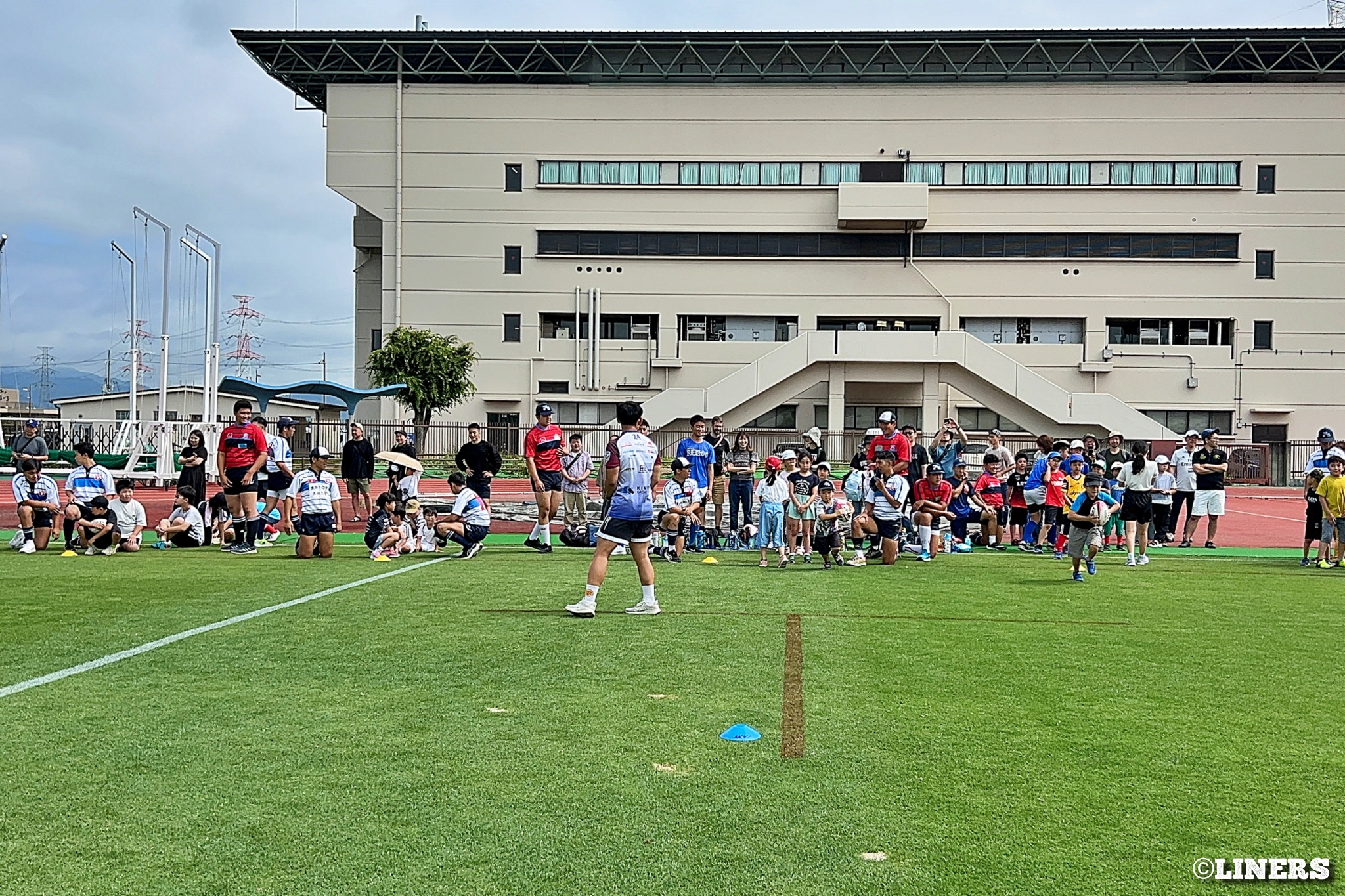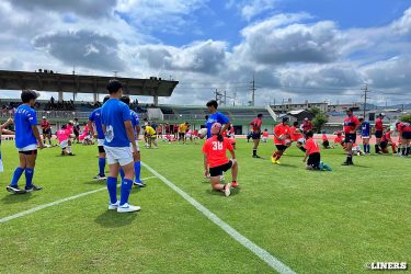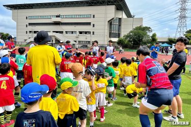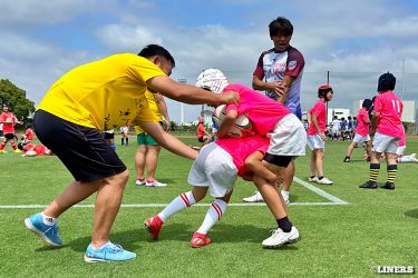 枚方ラグビーカーニバルにて、ラグビー体験とラグビークリニックを行いました。前半はラグビー体験。幼児から小学生まで、たくさんの方にご参加いただきました。後半は中学生を対象としたラグビークリニックを。中学校やスクールでラグビーをしている選手のみなさんに、ライナーズの選手が直接指導しました。