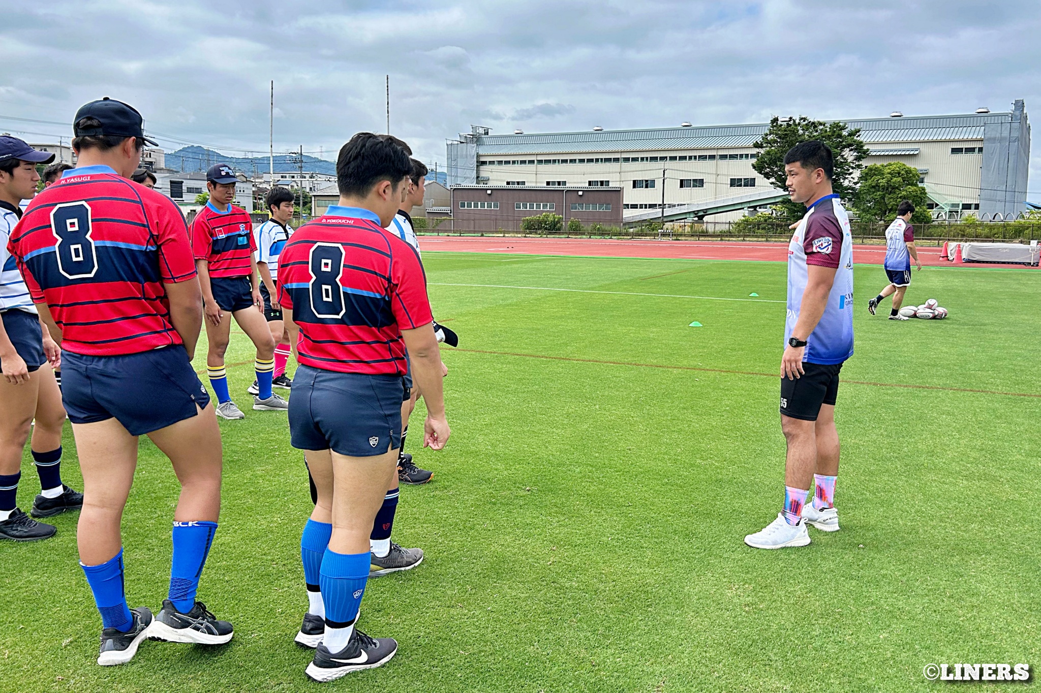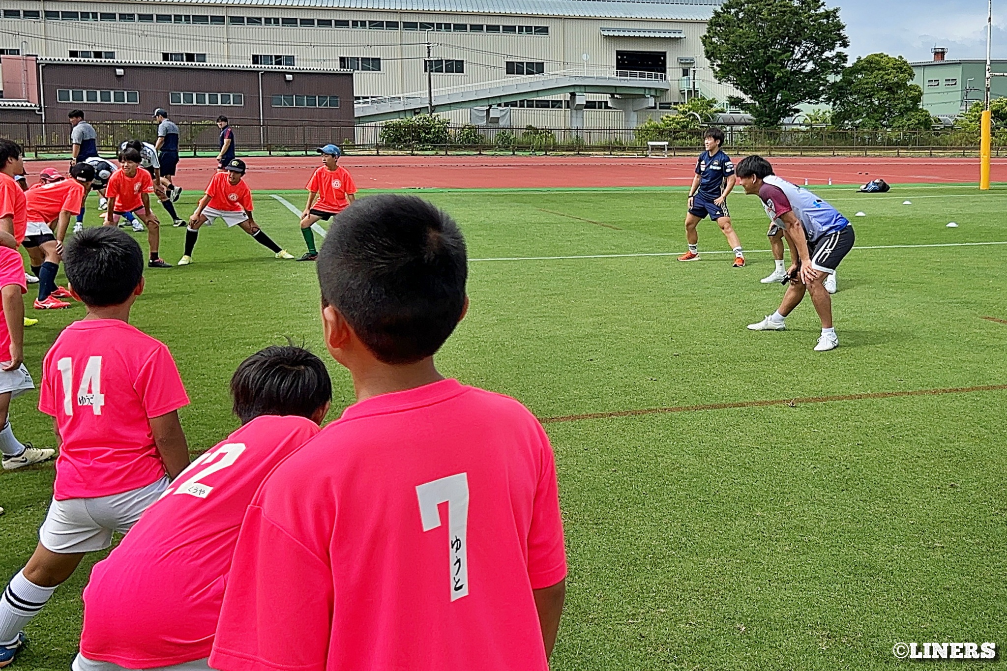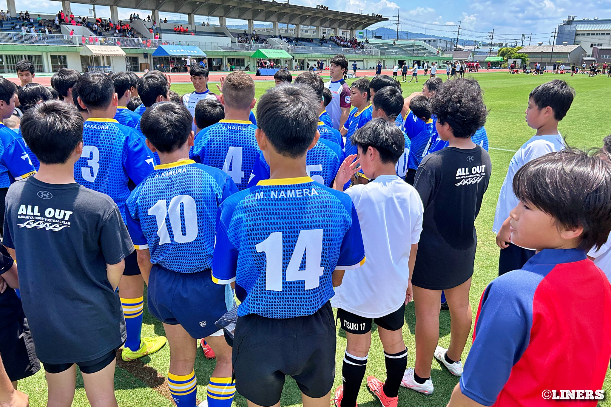 枚方ラグビーカーニバルにて、ラグビー体験とラグビークリニックを行いました。前半はラグビー体験。幼児から小学生まで、たくさんの方にご参加いただきました。後半は中学生を対象としたラグビークリニックを。中学校やスクールでラグビーをしている選手のみなさんに、ライナーズの選手が直接指導しました。