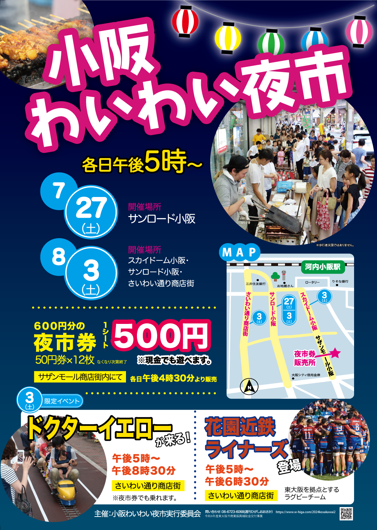場所:7月27日(土)サンロード小阪/8月3日(土)スカイドーム小阪、サンロード小阪、さいわい通り商店街