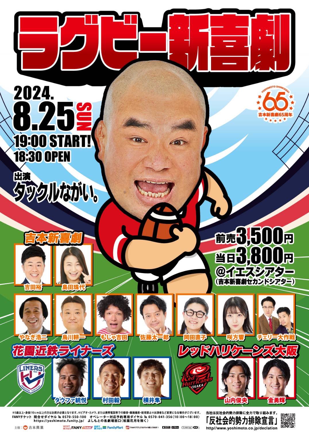 2024年8月25日(日)、「ラグビー新喜劇」に参加します。前売り券も販売中。ぜひご来場ください。