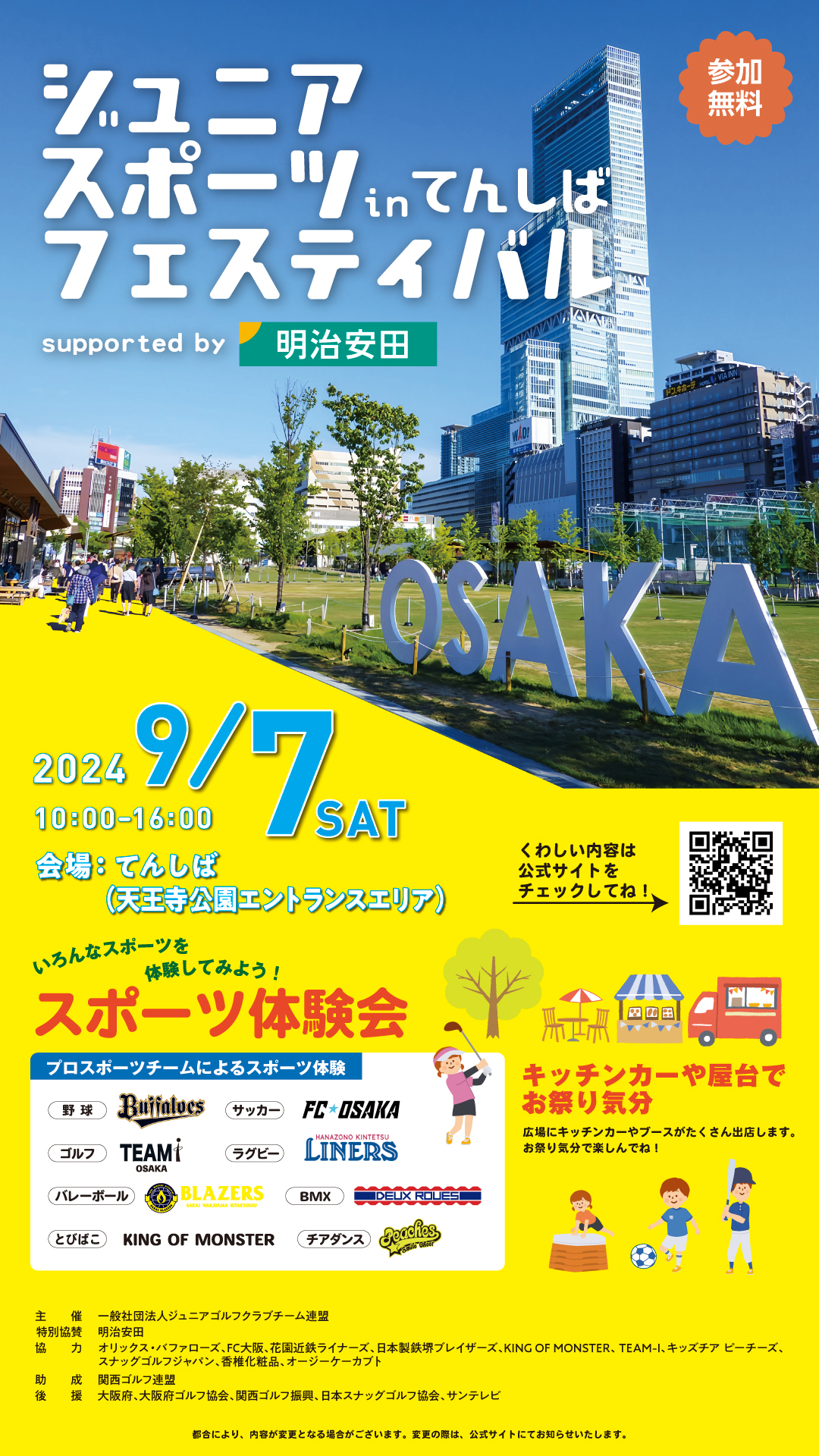 9月7日(土)、てんしばにて開催される体験型スポーツフェスティバル「第3回ジュニアスポーツフェスティバル」でラグビー体験を実施します。参加無料ですので、ぜひお越しください。