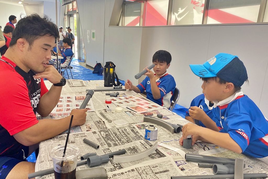 さらに、宿泊なしでも家族で楽しめるラグビー体験コーナー(ゴールキックやタッチフット)や、選手のアテンドつきスタジアムツアー、謎解きセルフツアーや、ロゴスワークショップなど、盛りだくさんの企画となっています(事前申込制、一部当日でも参加可能)。