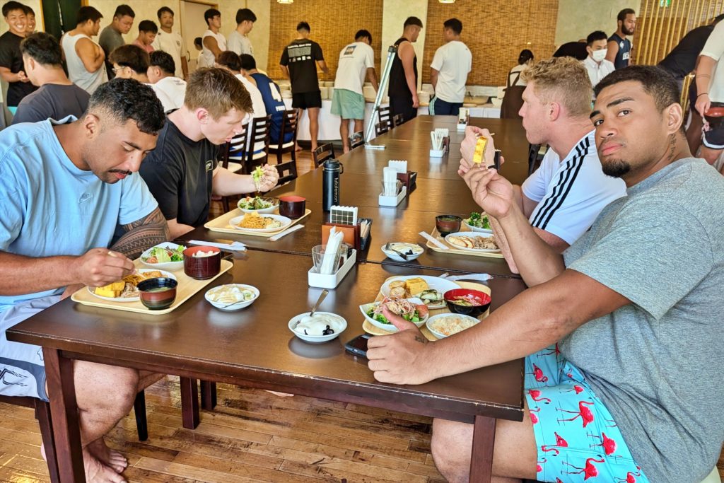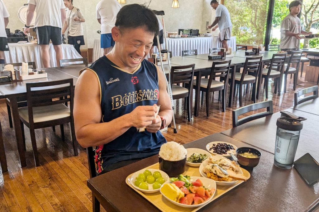 激励品は合宿中食卓に並べ、選手たちのエネルギーになりました。