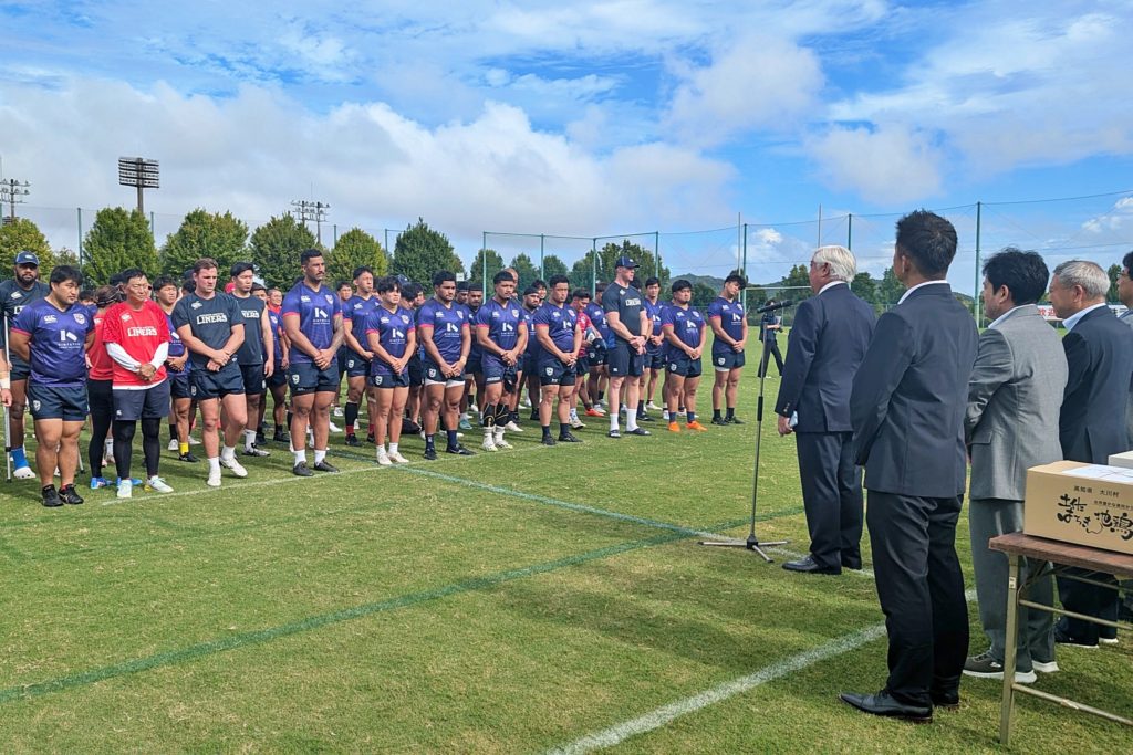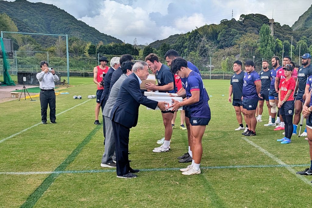 また、同日練習前には高知県の皆様に歓迎セレモニーを実施いただき、たくさんの激励品と、合宿中の成功・リーグ戦に向けたご声援をいただきました。
