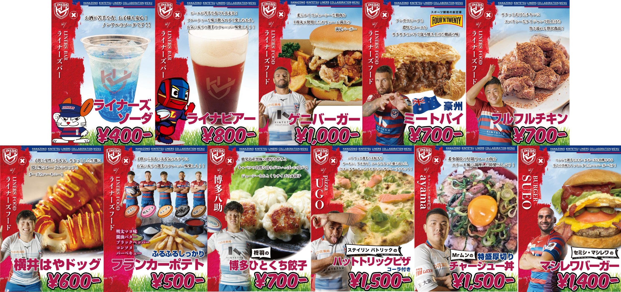 | ⑨ライナーズFOOD | ★ゲニバーガー/★豪州ミートパイ/★フルフルチキン/★横井はやドッグ/★フランカーポテト ほか |
