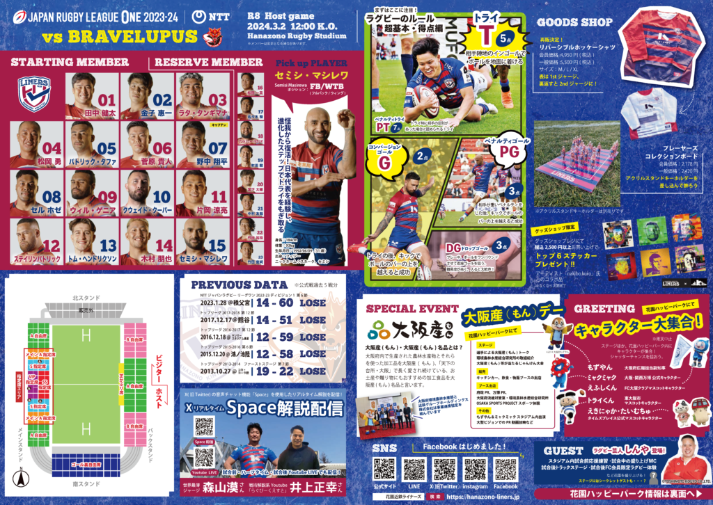 | 試合終了後 13:50 | ラグビー芸人・しんやトークショー ※シークレットゲストあり |