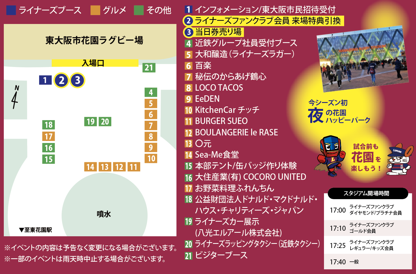 | ライナーズファンクラブ会員 来場特典引換 | 来場記念特典の引換 |