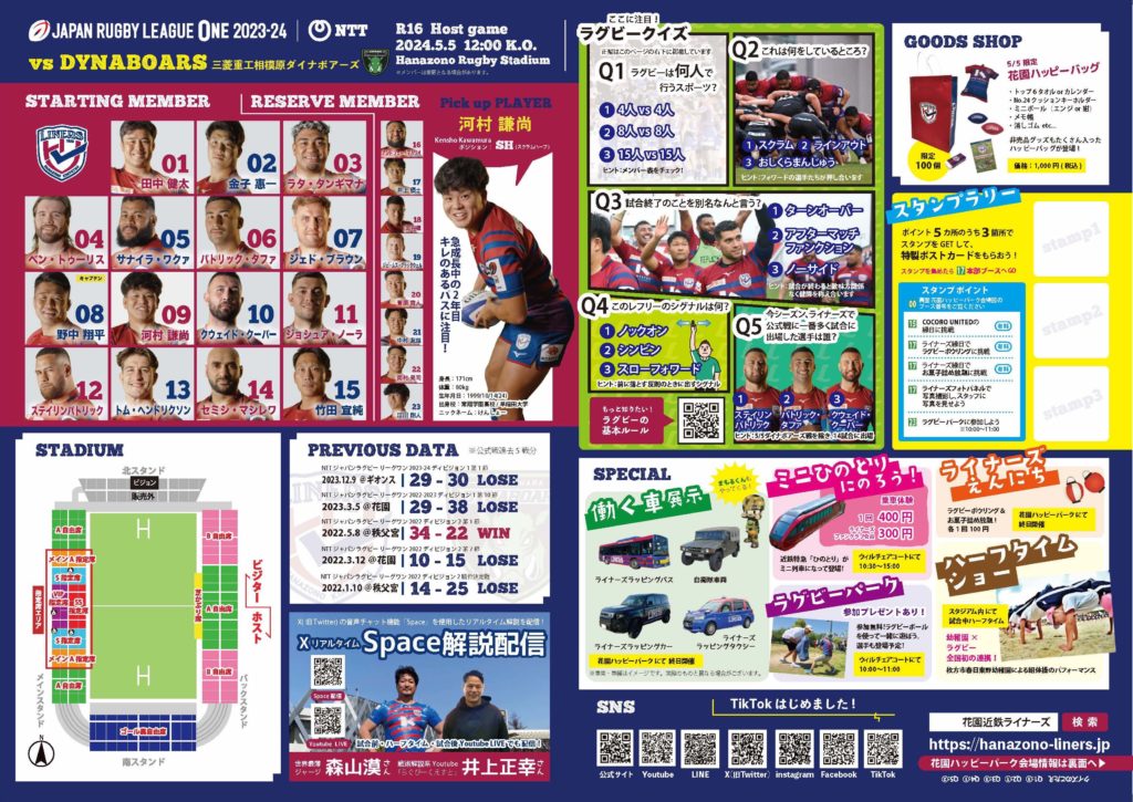 本部ブース・ラグビーパークにて配布します。