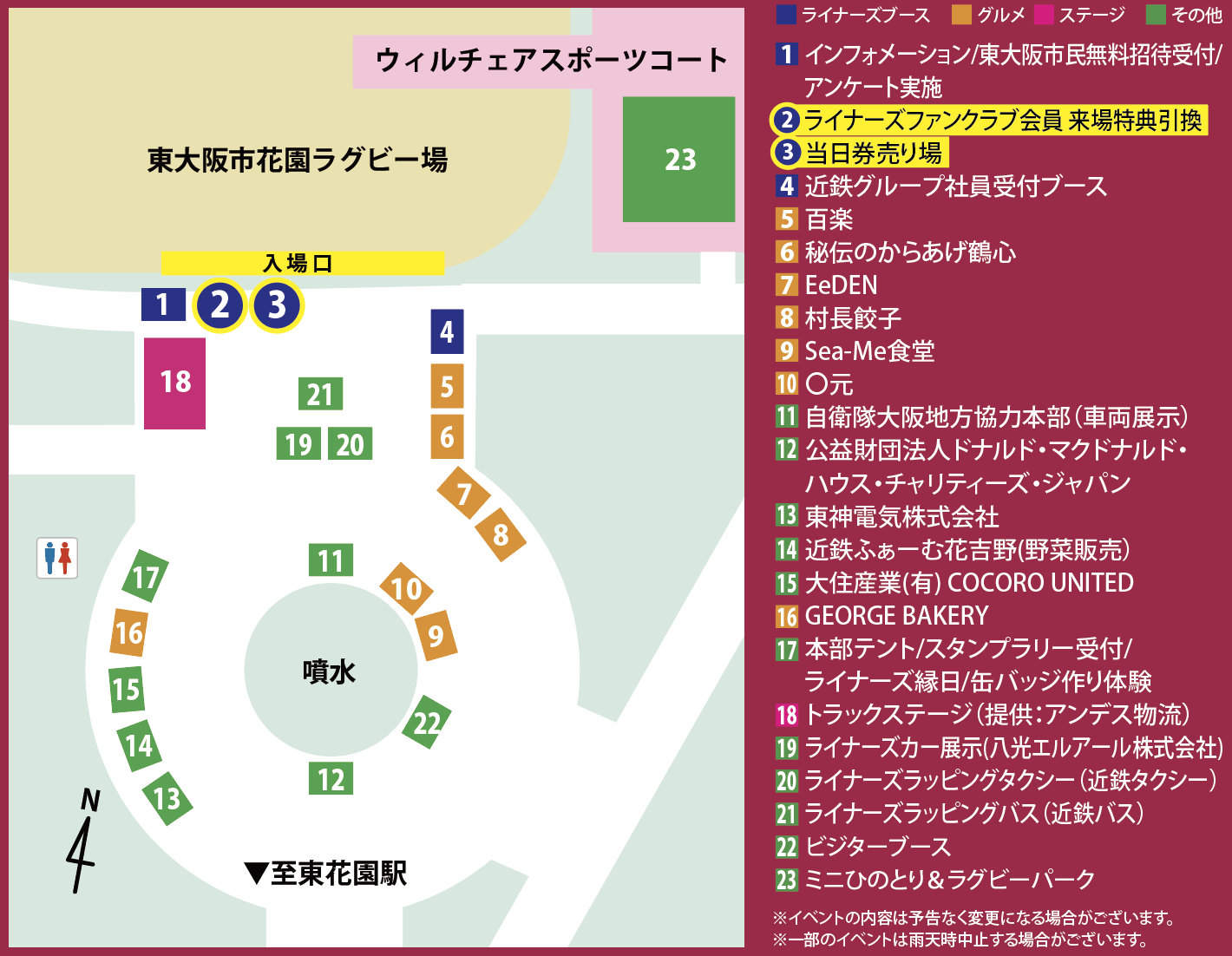 | ライナーズ縁日 | ラグビーボウリング、お菓子の詰め放題 |