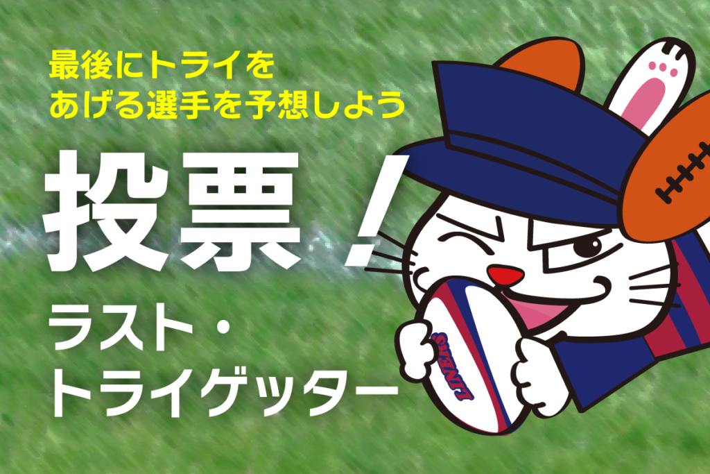 入場口にて配布の投票用紙に、試合最後のトライを取ると予想するライナーズの選手名と氏名(ニックネーム等OK)をご記入の上、投票箱にご投票ください。