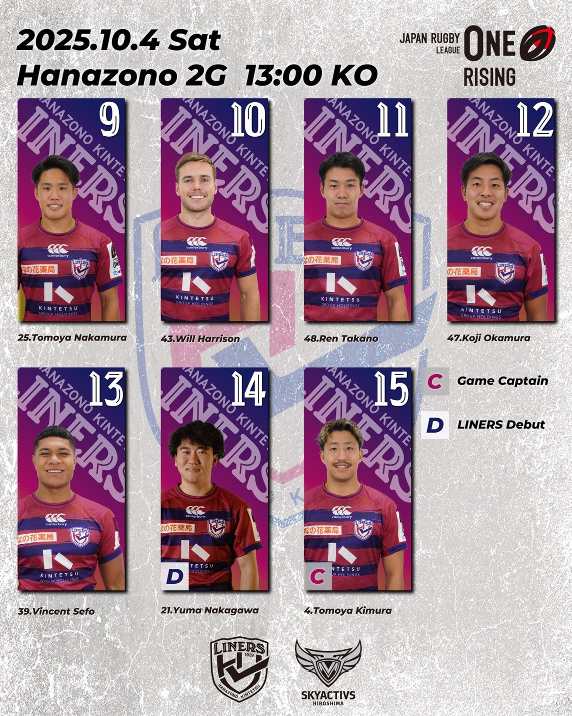 ジャパンラグビー リーグワン ライジング2025 第2週 マツダスカイアクティブズ広島戦のご案内をいたします。