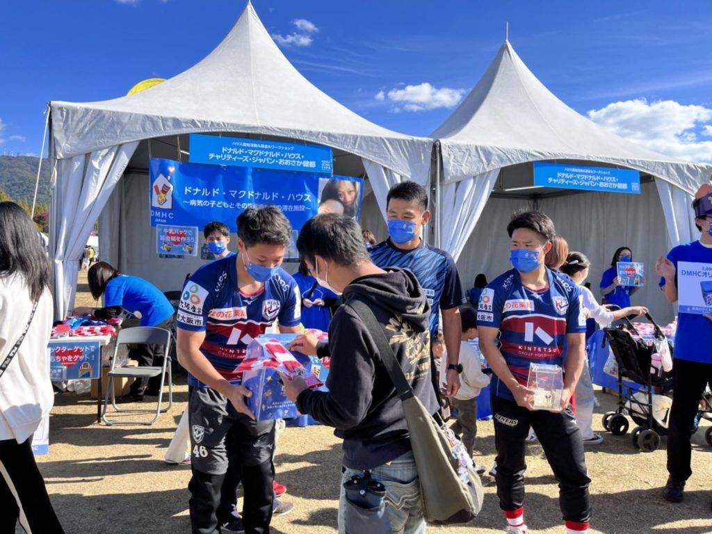 同日は、花園中央公園でHANAZONO EXPO 2022 が開催。チャリティーブースにて水間ヘッドコーチをはじめ大勢の選手・スタッフが募金の呼びかけを行いました。