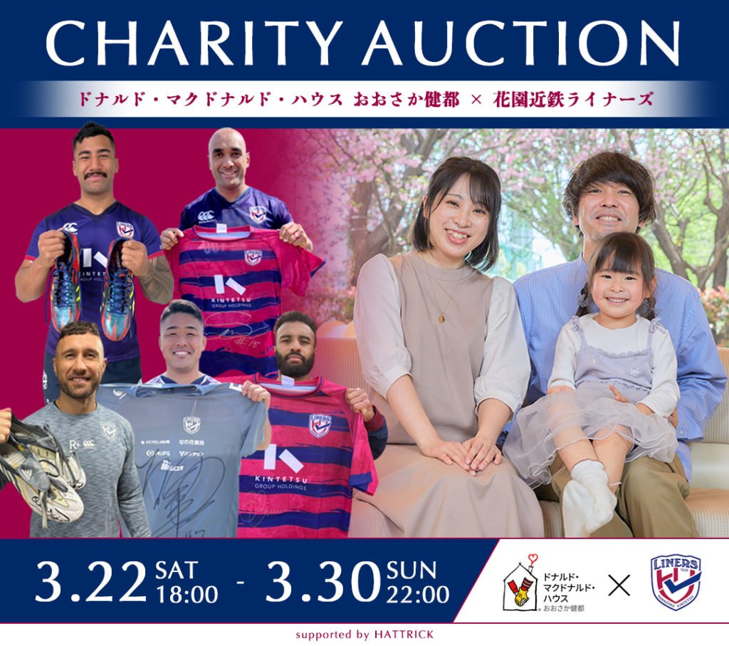 病気の子どもとそのご家族を支援するために、花園近鉄ライナーズの選手直筆サイン入りアイテムを出品するチャリティオークションが開催されます。