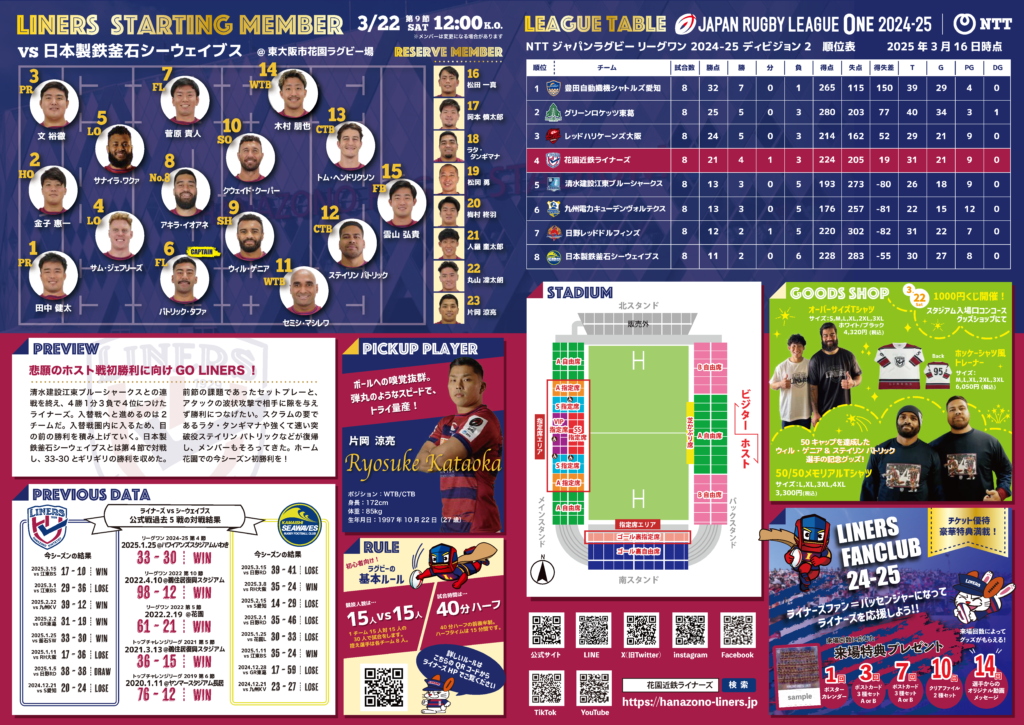 | ライナーズFOOD ※場内にて出店 | 選手コラボフード/コラボドリンクの販売 ほか |
