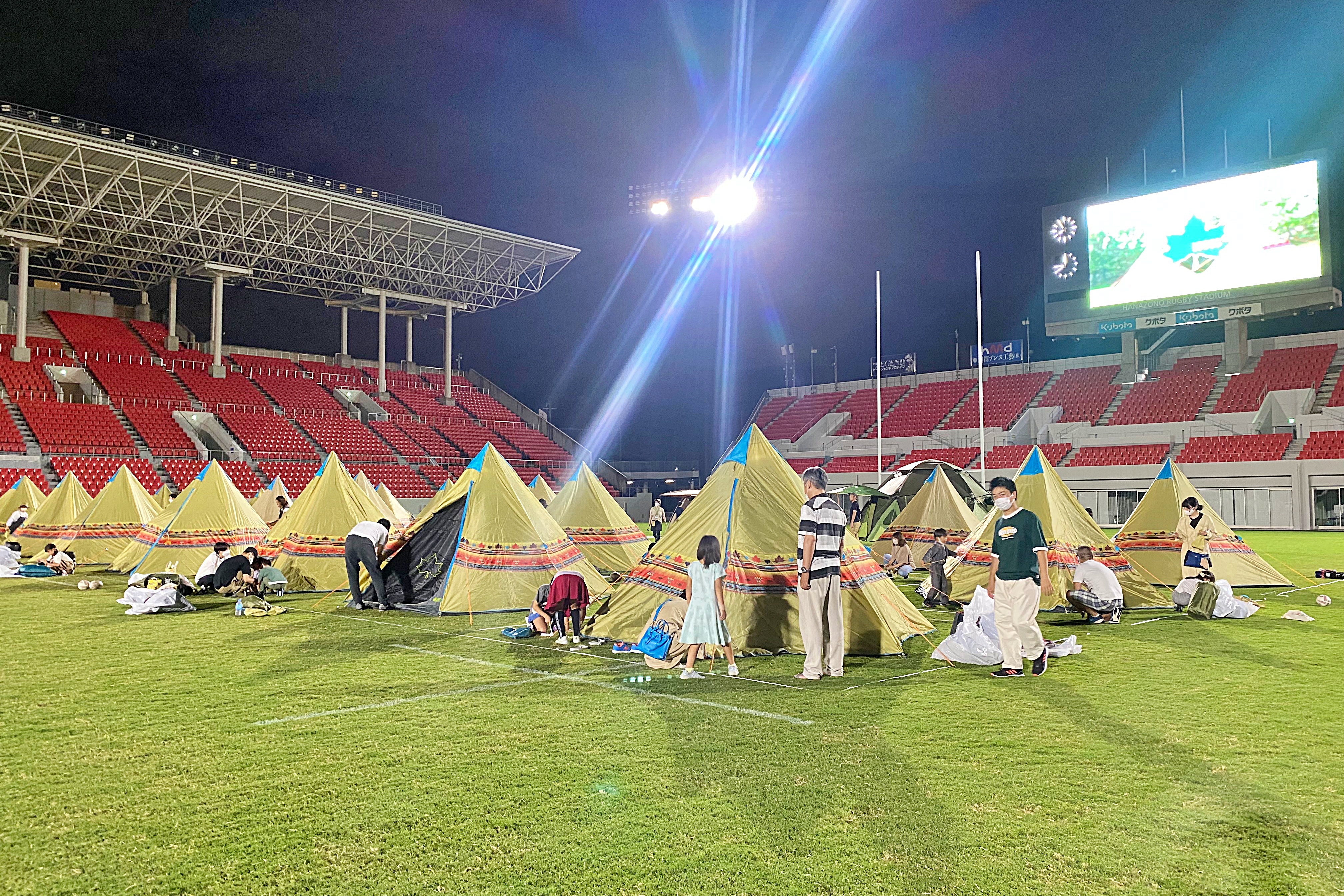 今回も株式会社ロゴスコーポレーションの協力のもと、11月1日(土)と2日(日)の2日間、ラグビーの聖地・花園の芝生の上でテントを張ってキャンプをお楽しみいただけます!