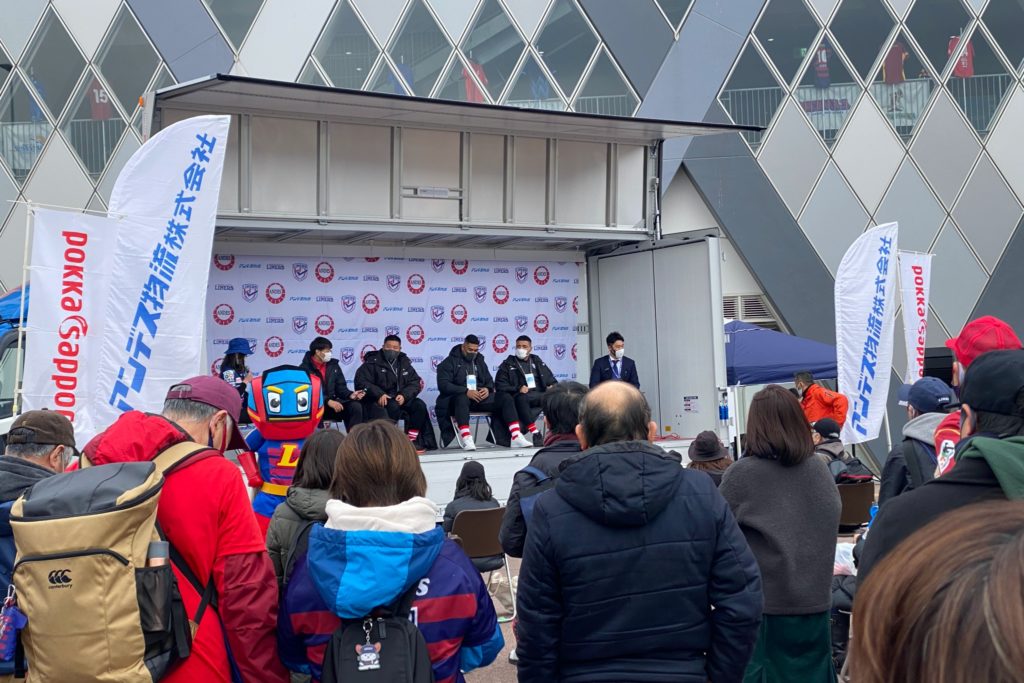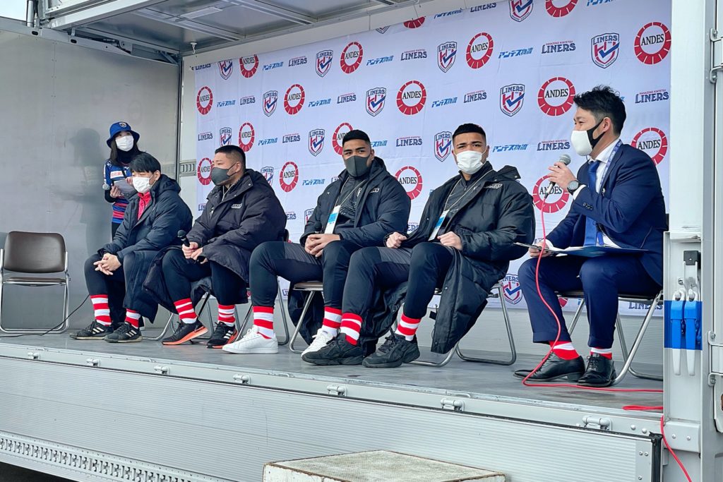 花園近鉄ライナーズのチーム理念やスローガンをもとに書き下ろしてくださった、2月26日にリリースしたばかりの「チャンピオンシップ」をステージで披露!
