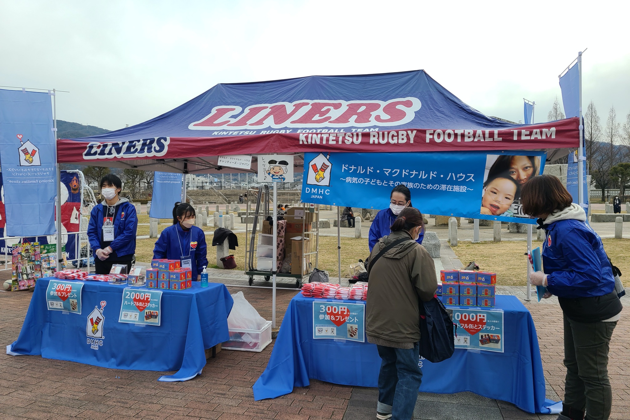 ハッピーパーク会場にて、ライナーズがパートナーシップ協定を結ぶドナルド・マクドナルド・ハウスへの募金活動を開始します。募金に協力してくださった方にはオリジナルのステッカーをプレゼントします。