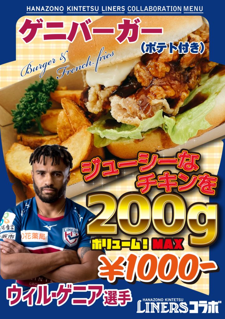 ウィル・ゲニア選手とのコラボメニュー「ゲニバーガー」!