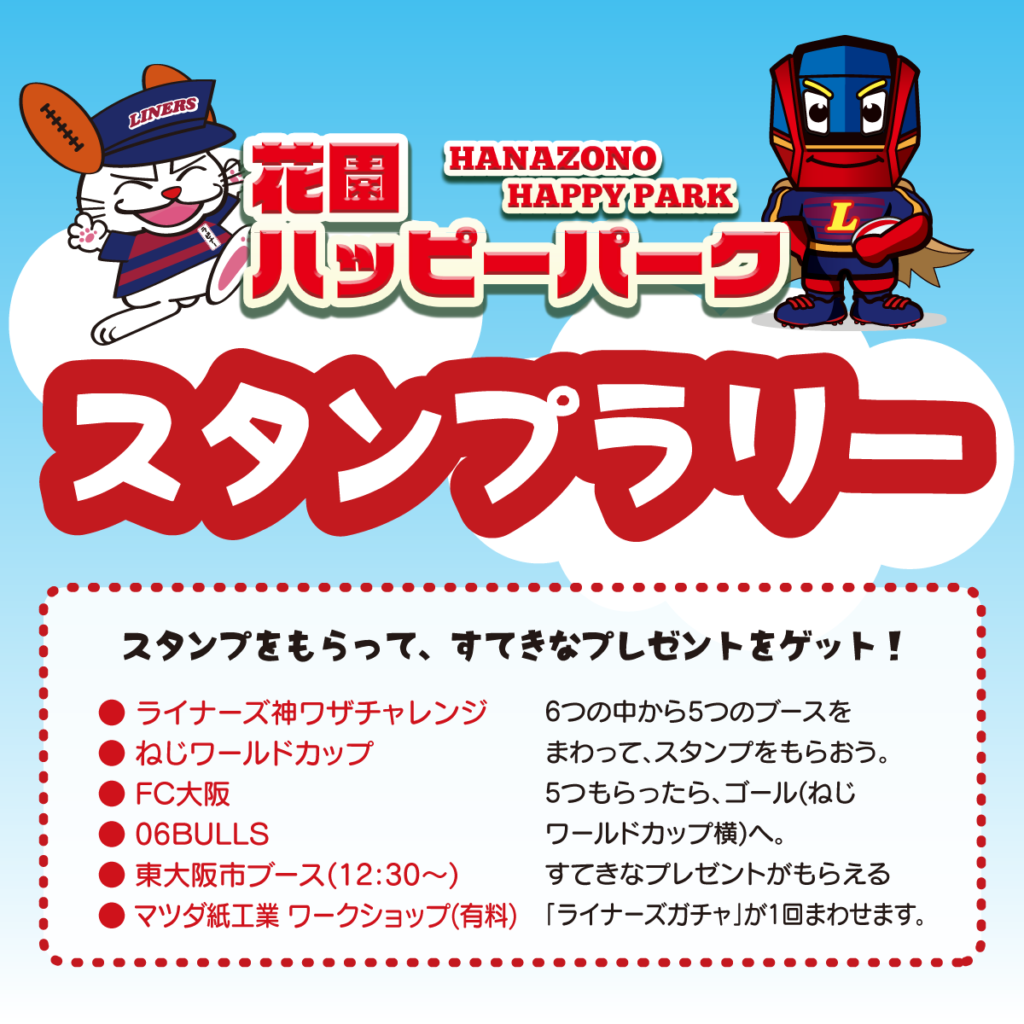 体験ブースでは、スタンプラリーを開催!6つのブース中5つ回ってスタンプをもらうと、無料招待券やノベルティーグッズが当たる「ライナーズガチャ」に挑戦できます。ぜひ体験しよう!