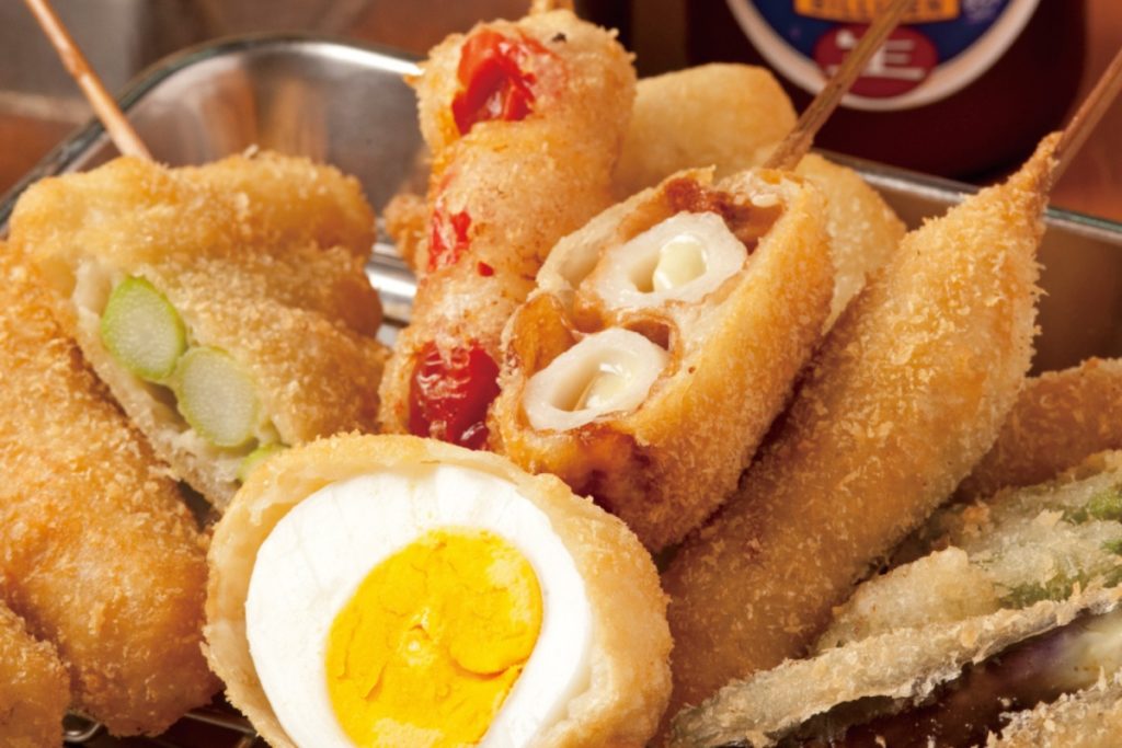新世界の味が八戸ノ里で楽しめる。ボリュームのある串かつで、安くてお腹いっぱいに。名物のどて焼きもぜひ。
