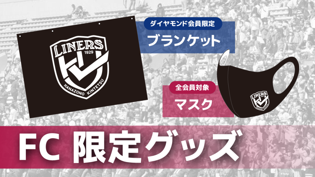 LINERS FAN CLUB限定、オリジナルグッズとしてライナーズマスクを進呈。またダイヤモンド会員の方のみにライナーズオリジナルブランケットもプレゼントします。