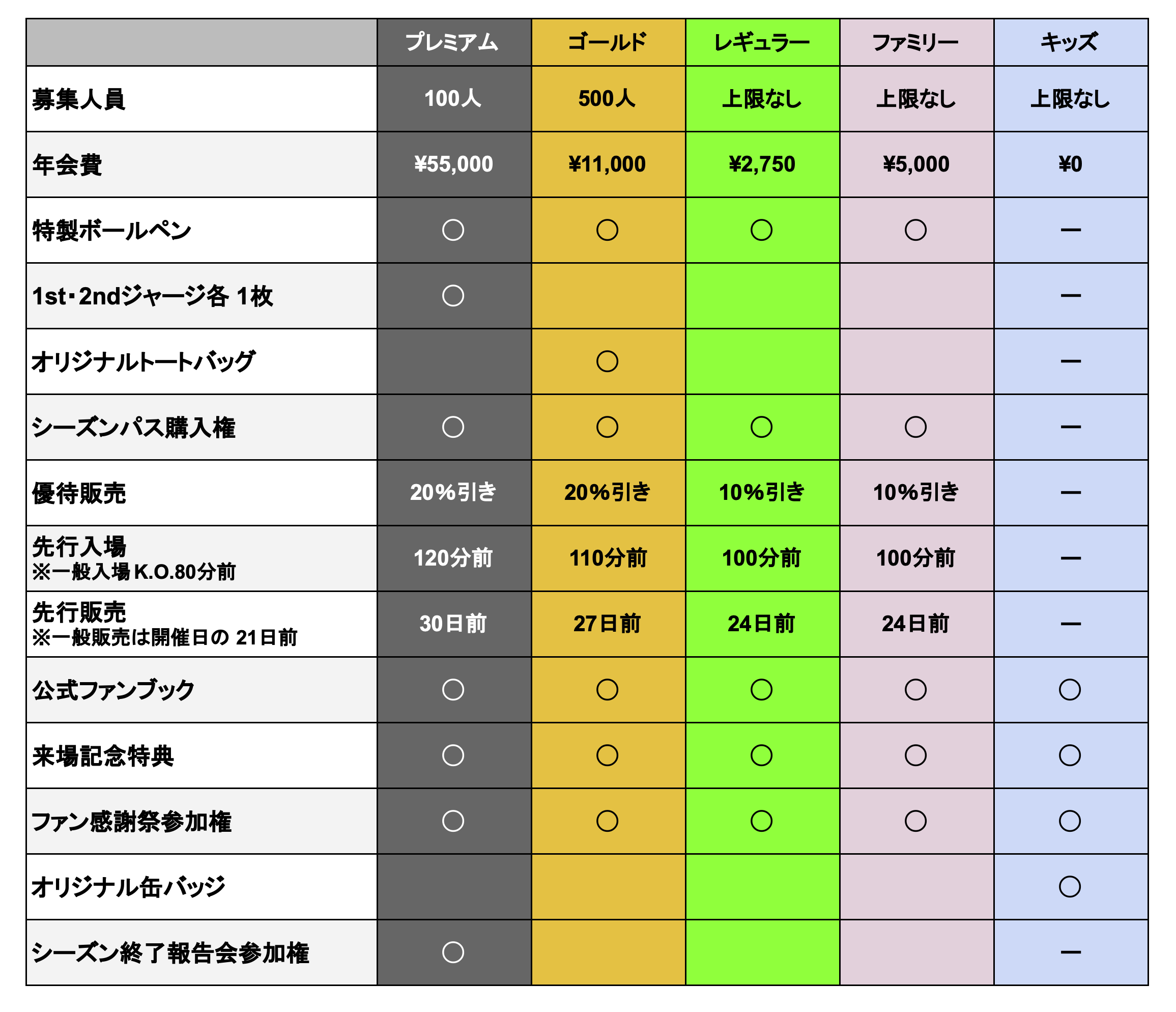 会員特典には記載しておりませんが、今シーズンも練習見学会などのファンクラブ会員様限定のイベントを実施予定です。詳細の案内については、会員マイページやメールにて随時お知らせいたします。
