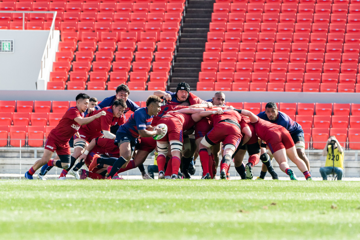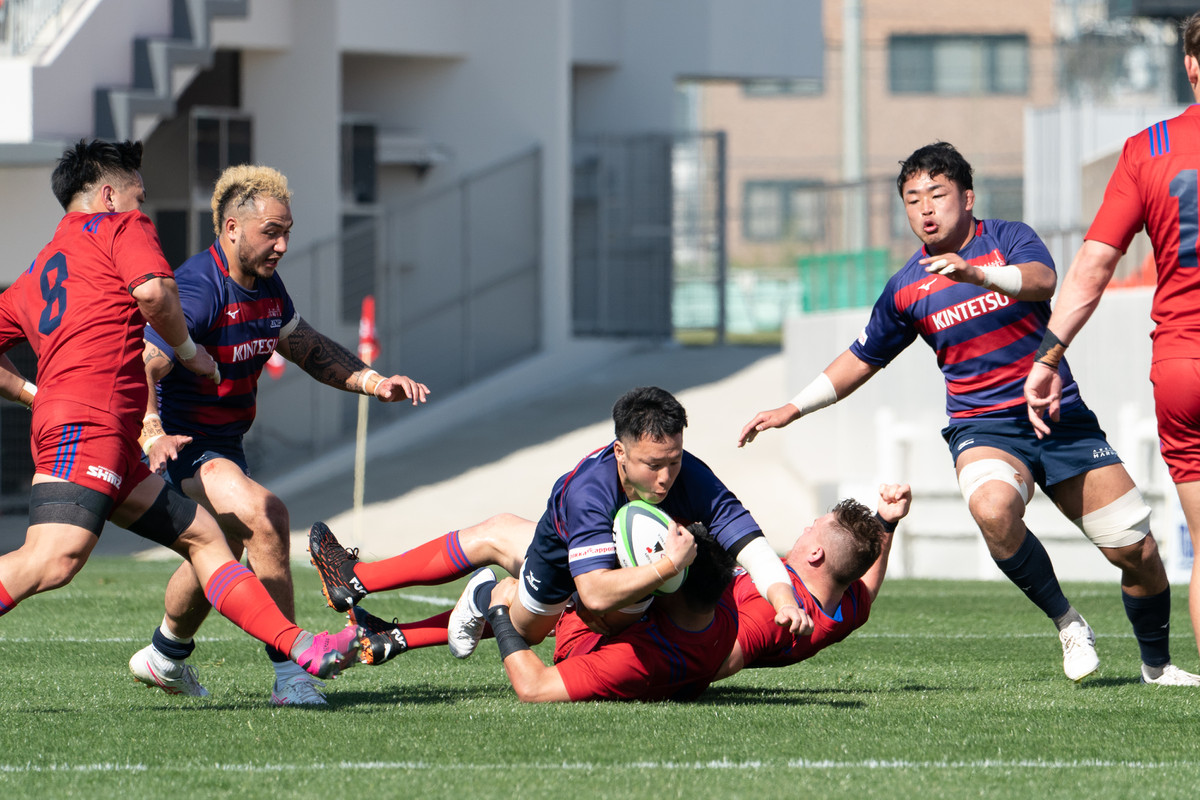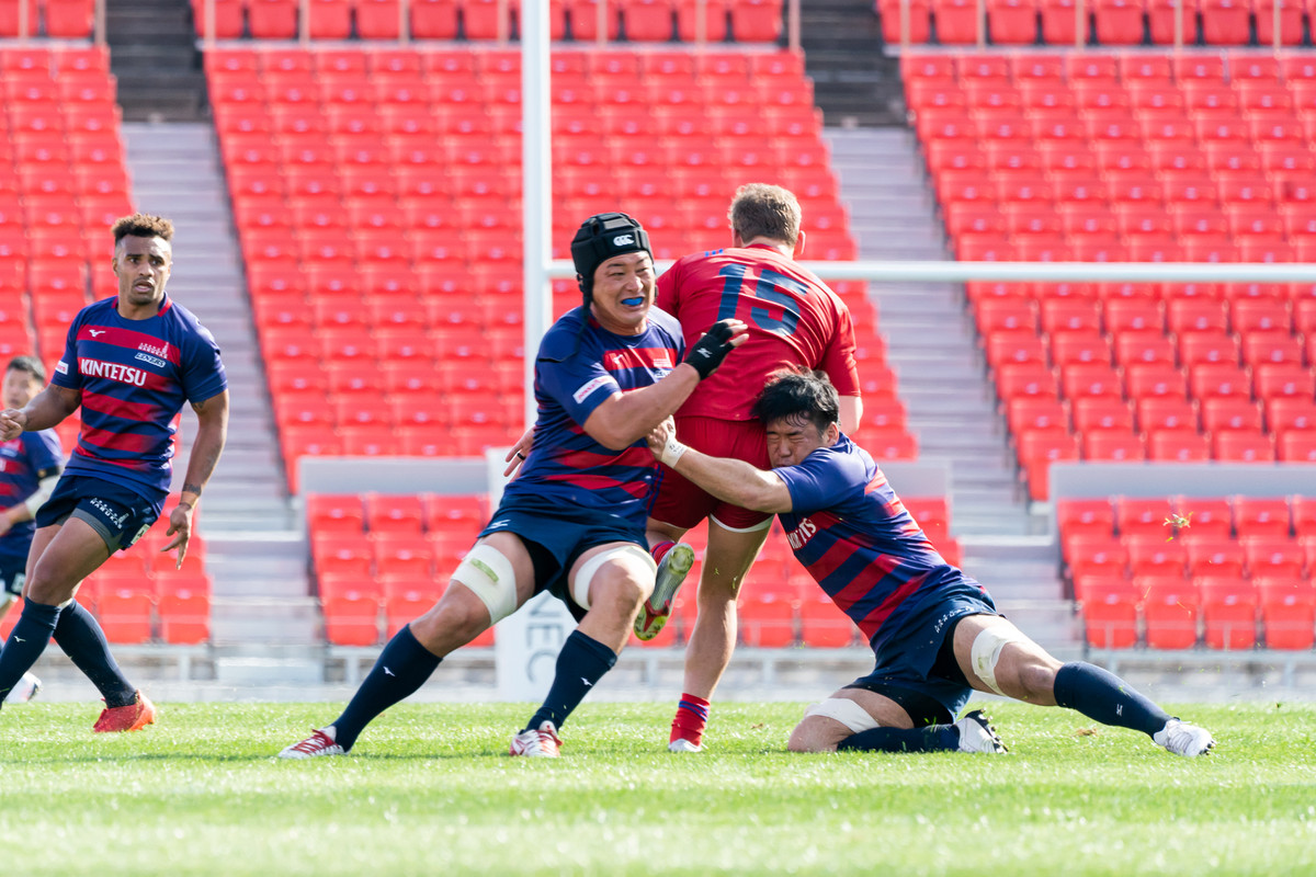 しかし、依然として流れは清水建設に。33分、38分と連続でトライを奪われ、24-19と僅差になります。