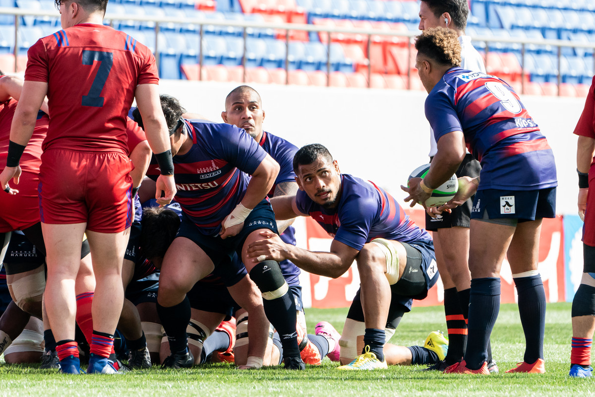 清水建設のキックで試合開始。ライナーズは開始早々相手陣でプレーします。