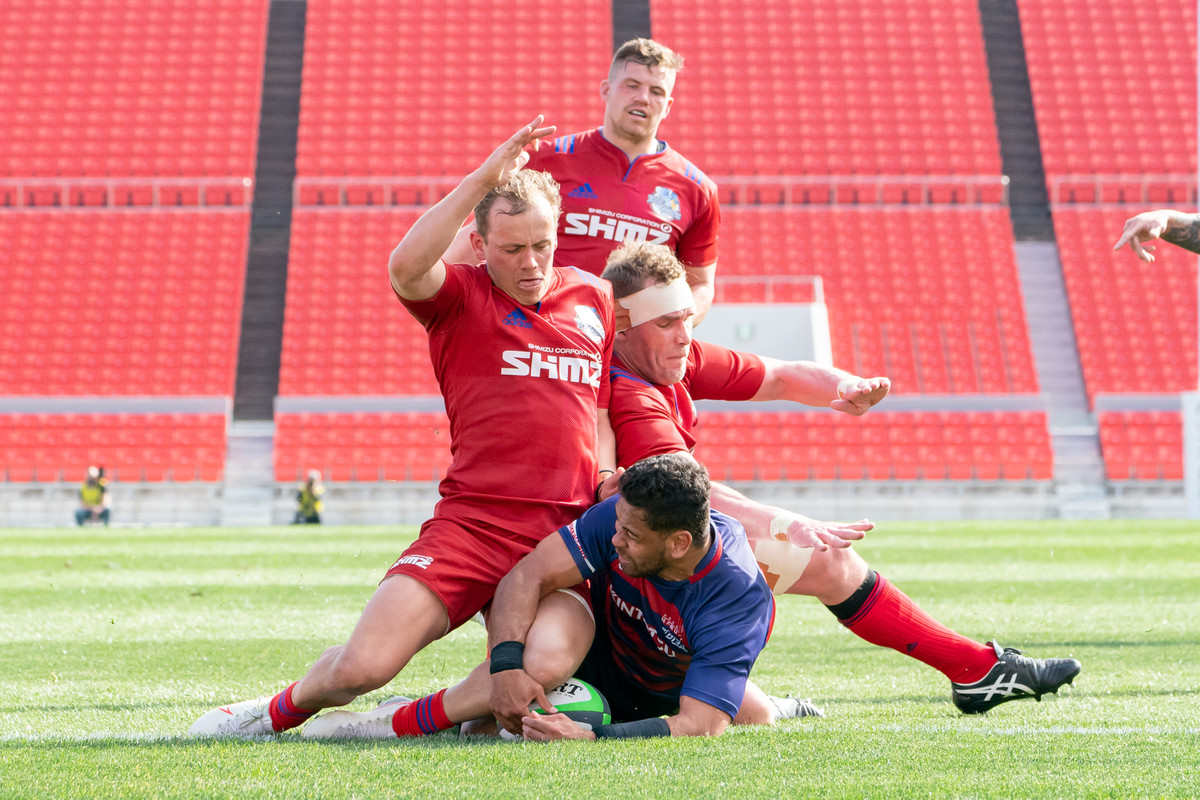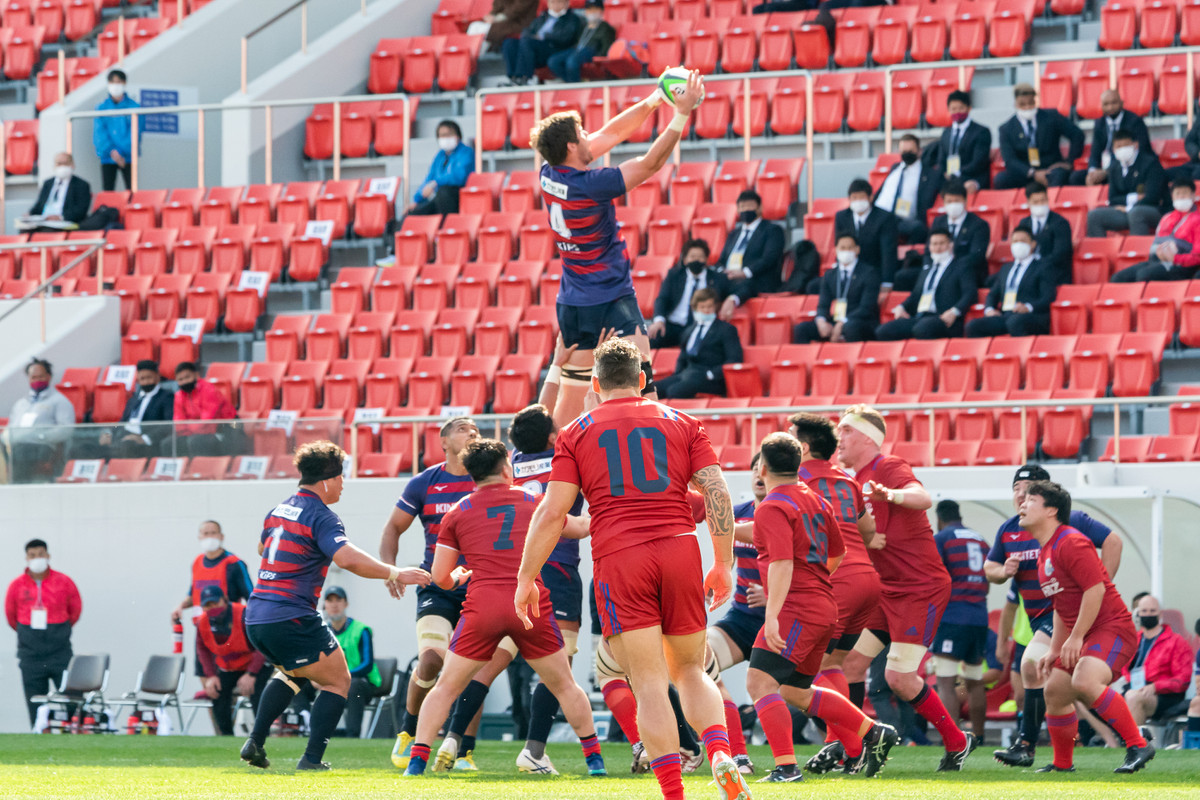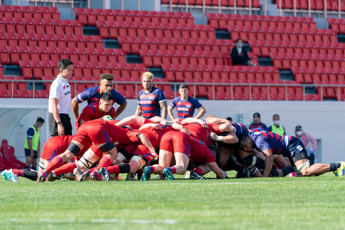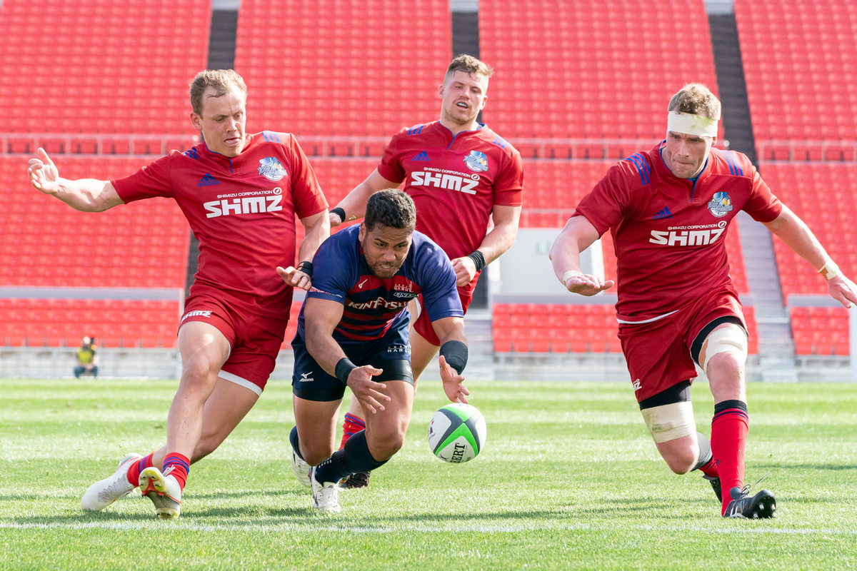ライナーズの初戦は2021年2月14日(日)。清水建設ブルーシャークスと、無観客のホーム・花園にて戦いました。