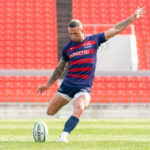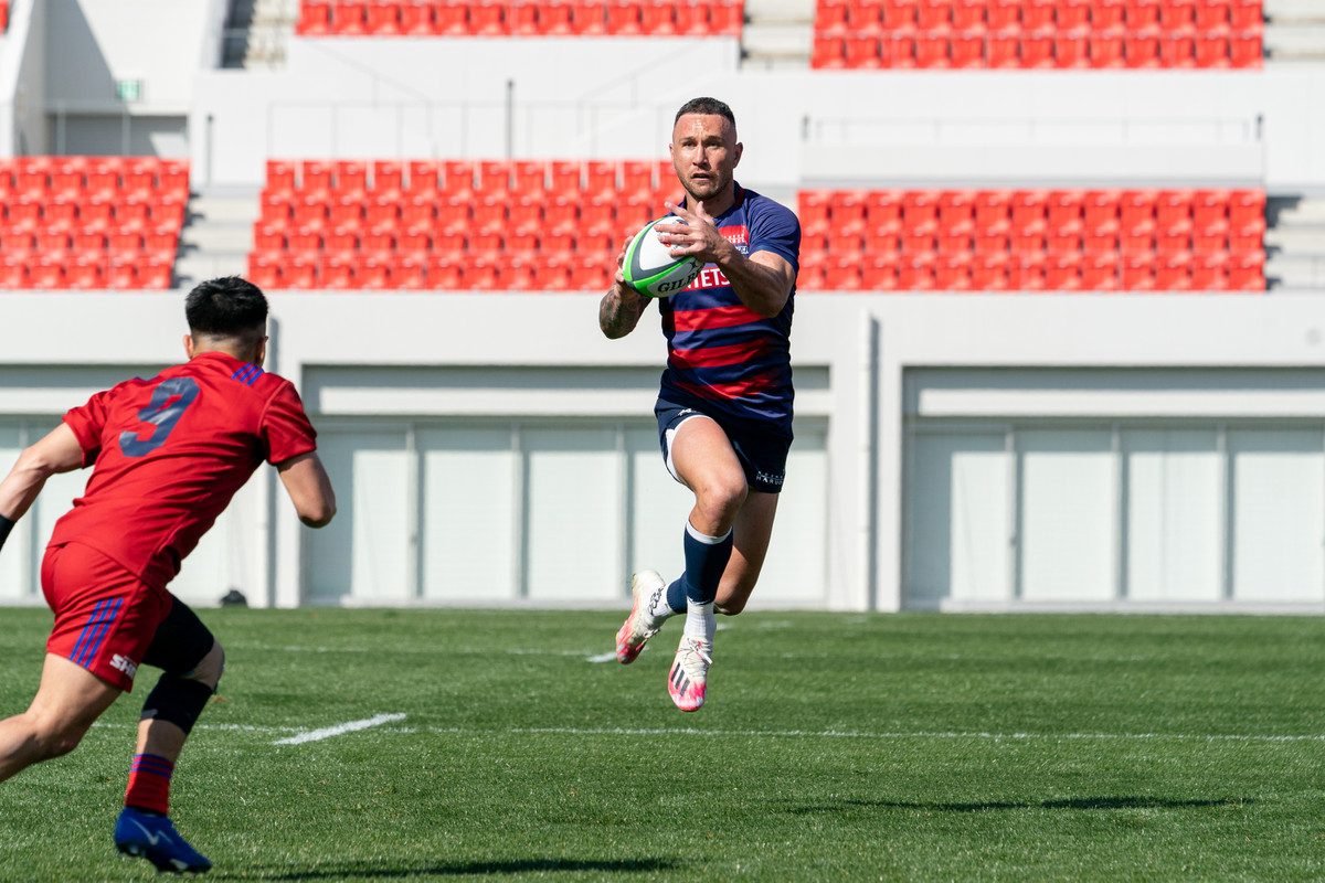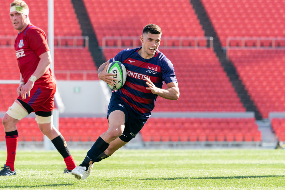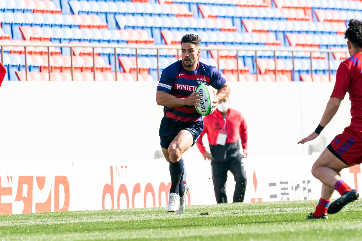 点差を広げたいライナーズは、ロスタイムでクーパーのキックパスからジョシュアがキャッチし、後ろから走ってきたゲニアへ。中央にトライし31-19で折り返します。