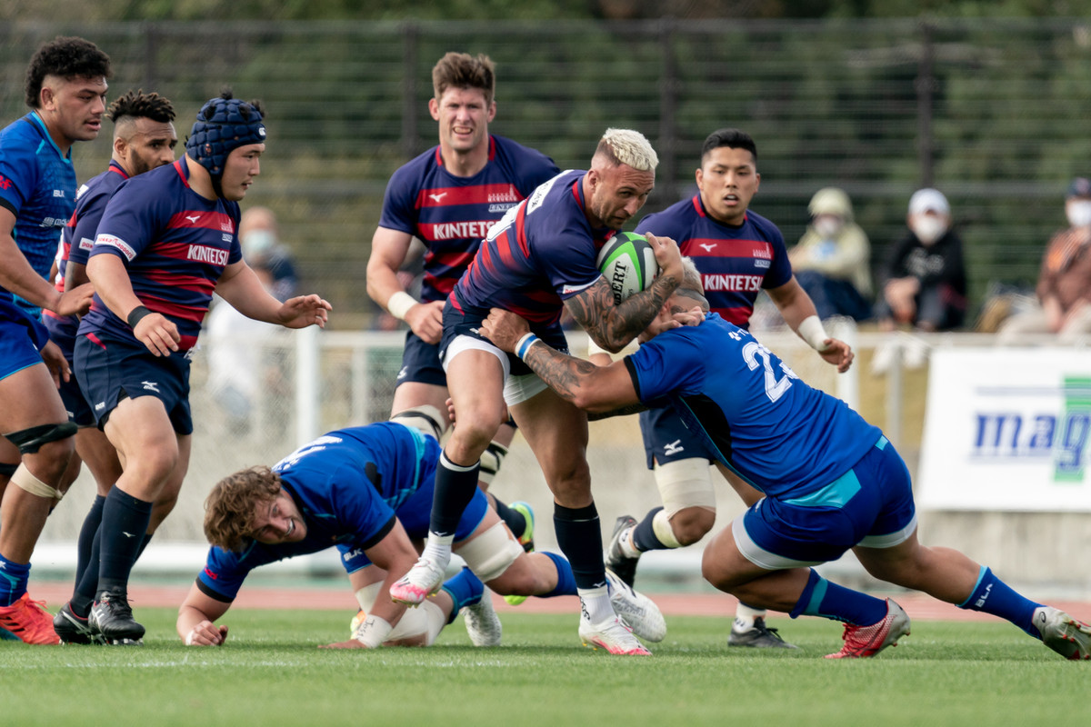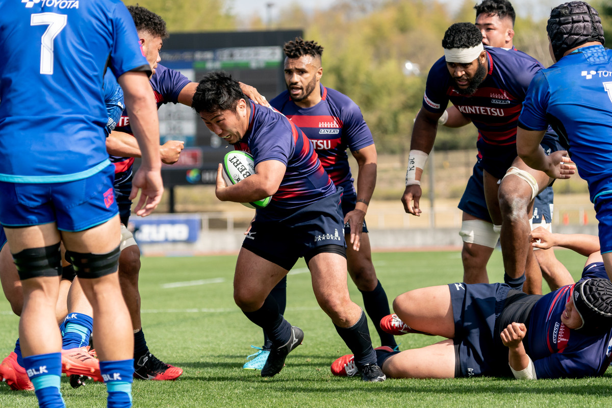 開始早々の前半2分、豊田自動織機に先制トライを許しますが、ライナーズはすぐに切り替えます。