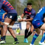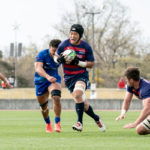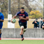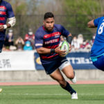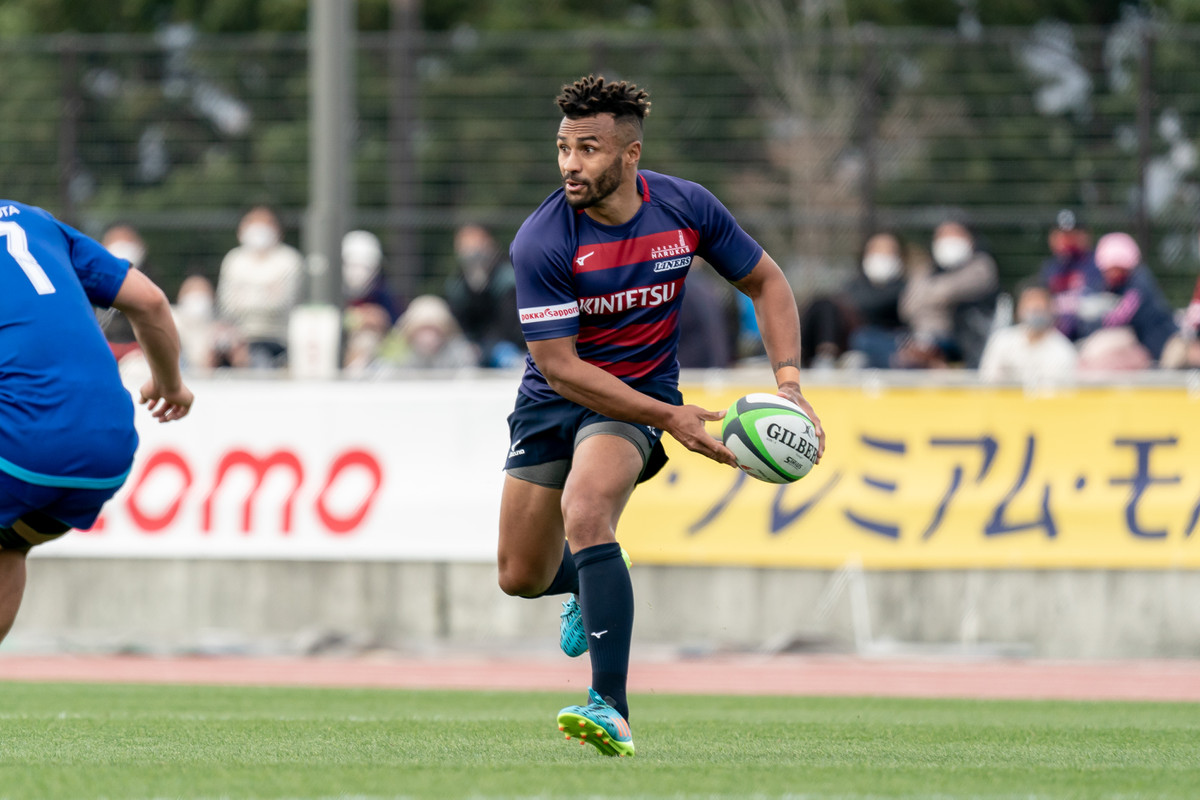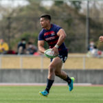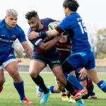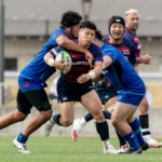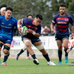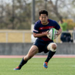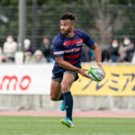 前半6分、相手陣22m付近で9ゲニア、5ワクァと左へつなぎ、新加入でスタートから出場の13フィフィタへ。キックパスで大きく左へ弧を描くと、11片岡がキャッチしトライ。5-7とし、2点差で追いかけます。
