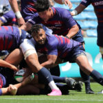さらに28分にはFWが魅せます。残り5mのマイボールラインアウトから、1人分外にずらしてモールを形成。そのままNo.8ロロが抑えてトライを奪い、17−7と3連続トライで突き放します。