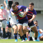 スクラムは互角ながら、チャンスを活かしきれなかったライナーズは、テンポを上げるサニックスのアタックに徐々に後退。10分に自陣22m内の密集を抜かれてトライを奪われます。0−7と先制トライを許します。