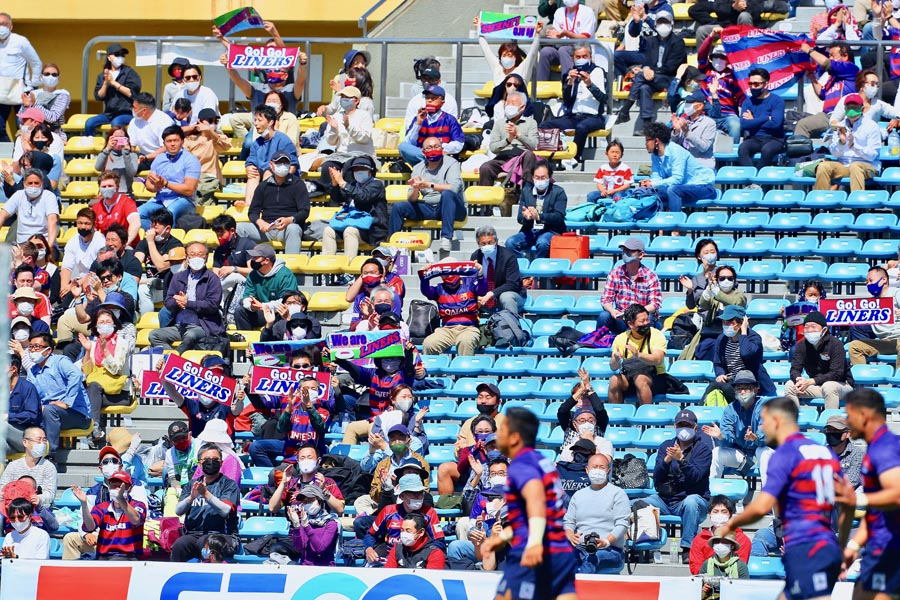 スタートから敵陣で激しくプレーするライナーズは、22m内ゴールポスト真正面でペナルティを得ます。PGも考えられる状況でしたが、スクラムを選択するとスタンドから早速大きな拍手が上がります。