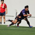 5-7のNTTドコモリードで迎えた18分、ラックから10吉本が後ろから走ってきた15野口へつなぎ、そのまま中央右にトライ。