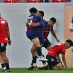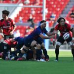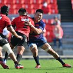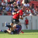 その後自陣でのディフェンス中、巧みに抜けられ1トライを献上しますが、すぐさま体制を立て直します。