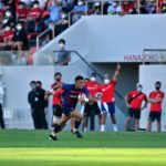 対戦相手はNTTドコモレッドハリケーンズ大阪。この日は花園ラグビーの日制定記念イベントの一環「Future star’s cup」として位置づけられ、約9000人のファンのみなさまに囲まれゲームに挑みました。