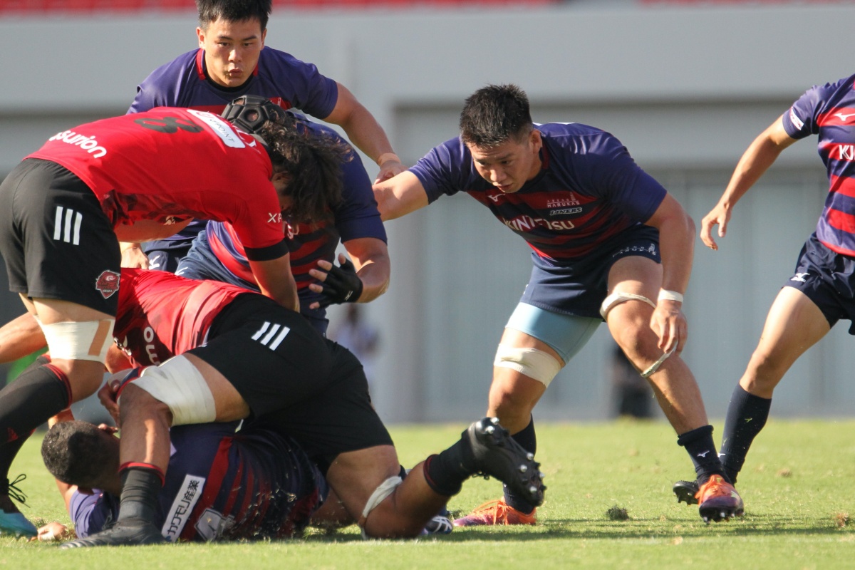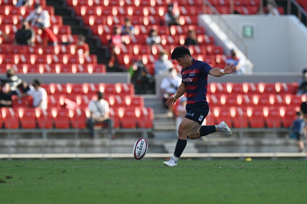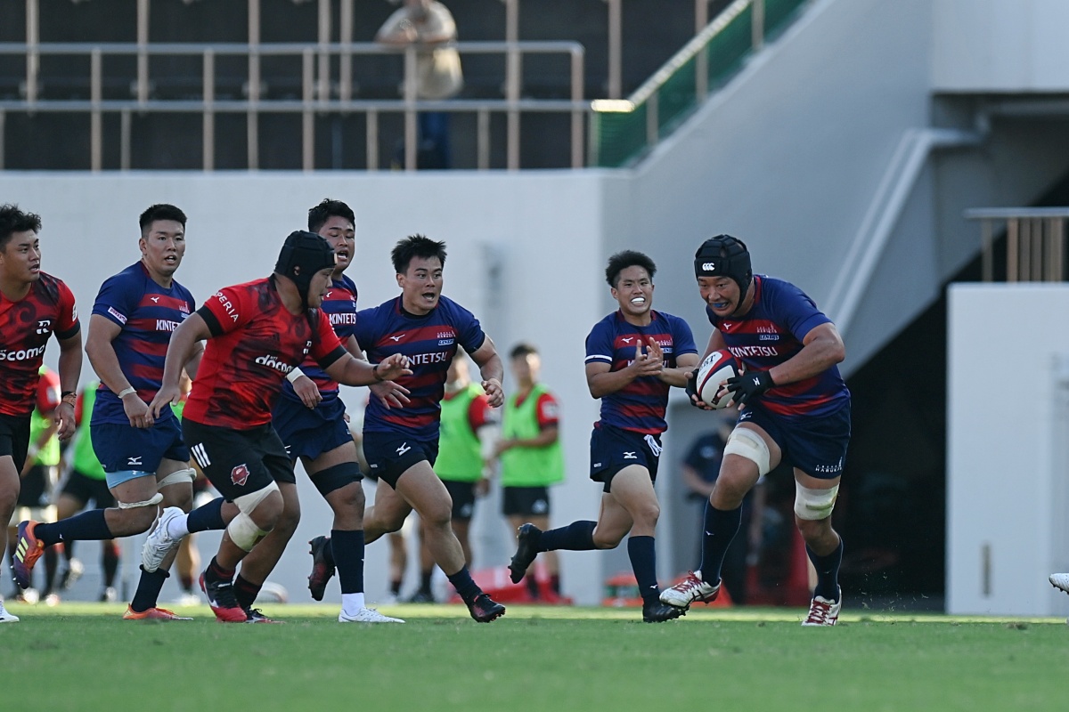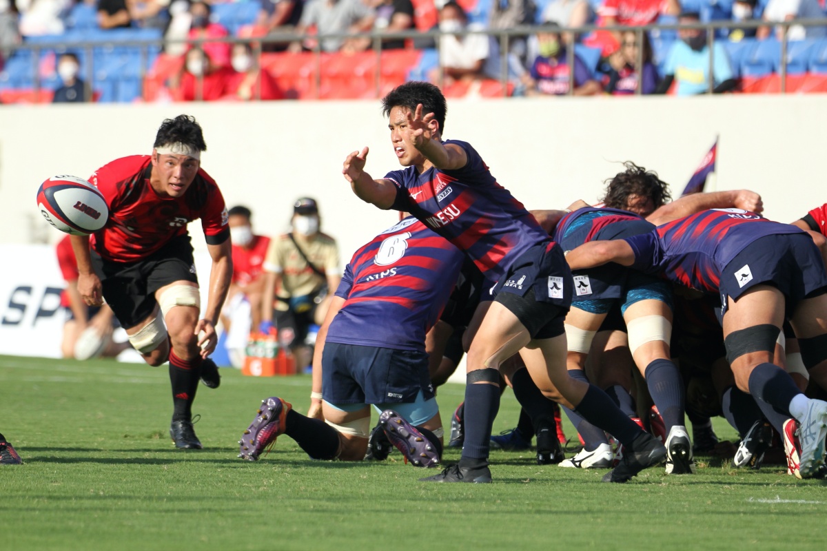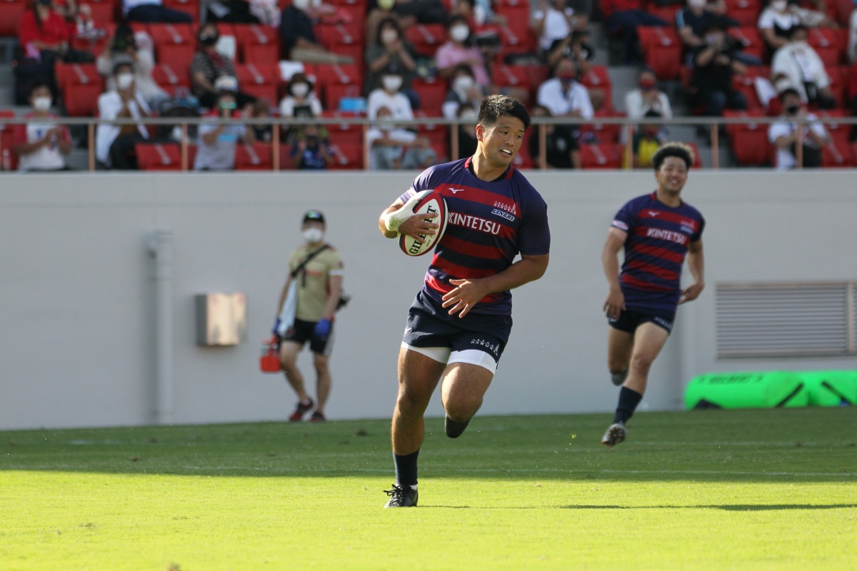 5-7のNTTドコモリードで迎えた18分、ラックから10吉本が後ろから走ってきた15野口へつなぎ、そのまま中央右にトライ。