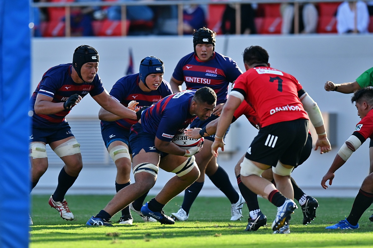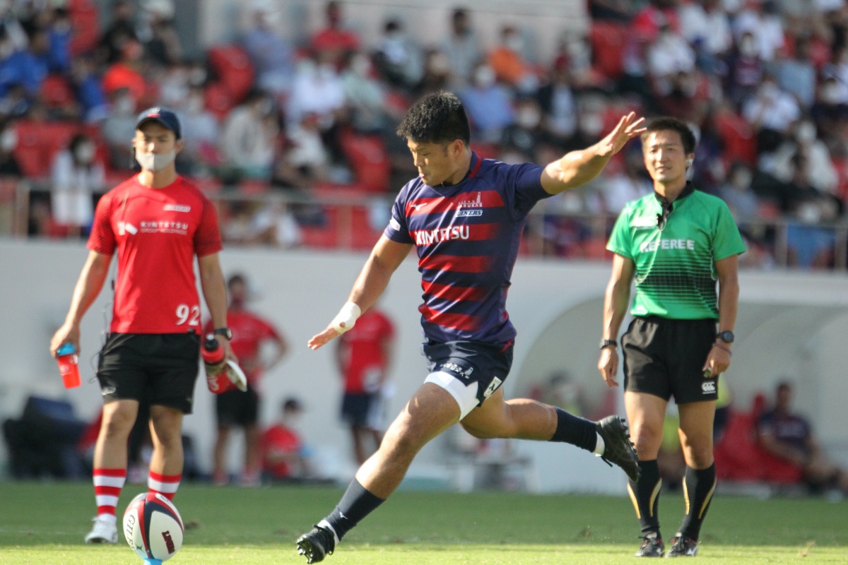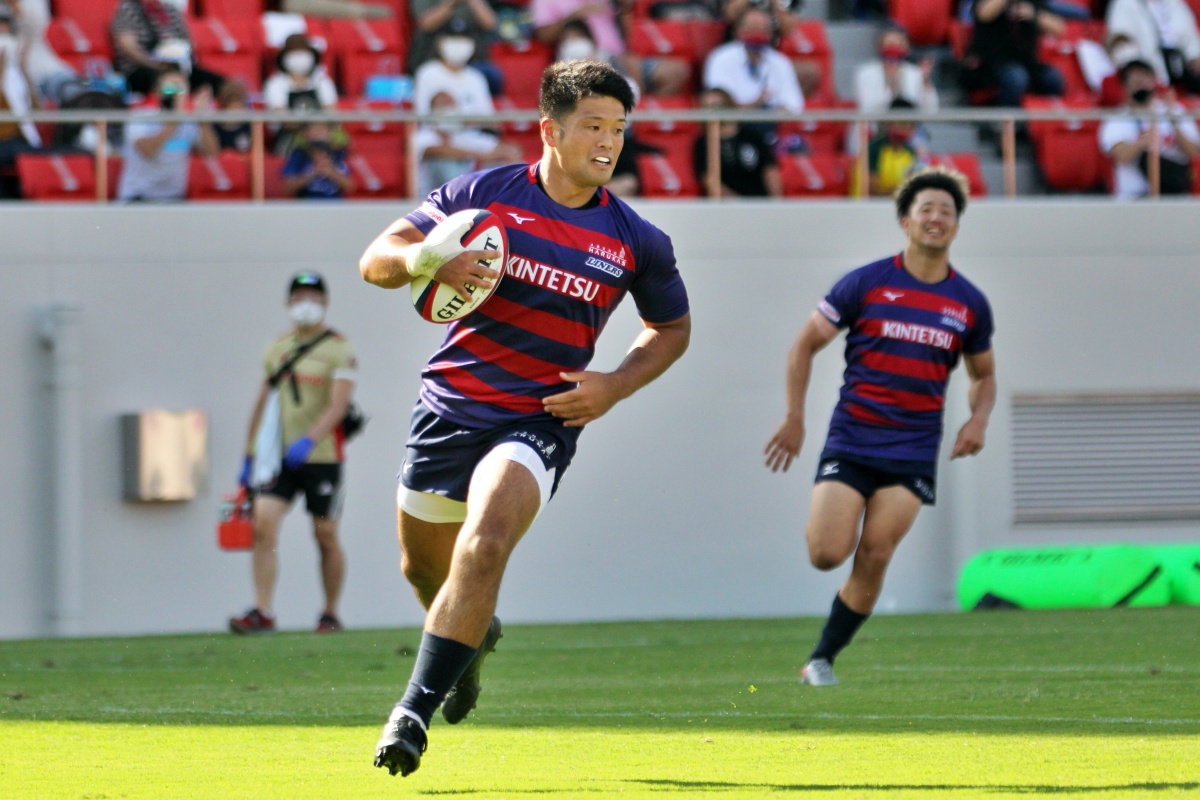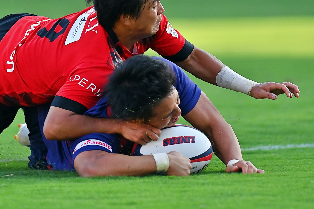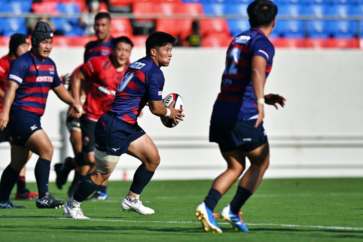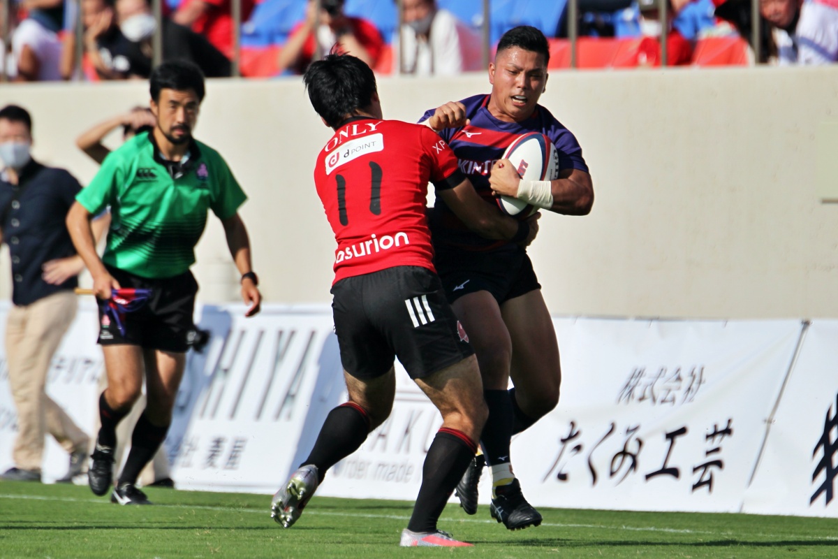 5-7のNTTドコモリードで迎えた18分、ラックから10吉本が後ろから走ってきた15野口へつなぎ、そのまま中央右にトライ。