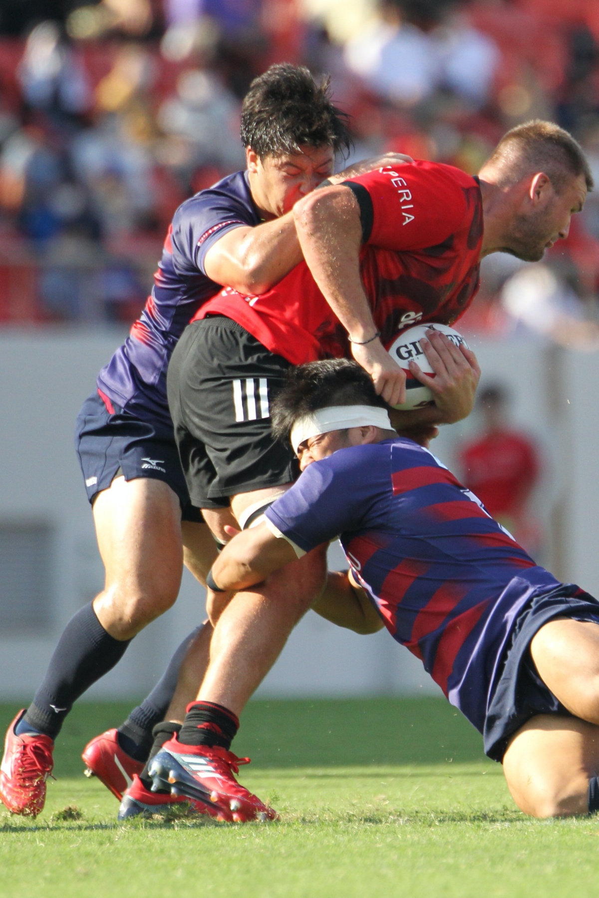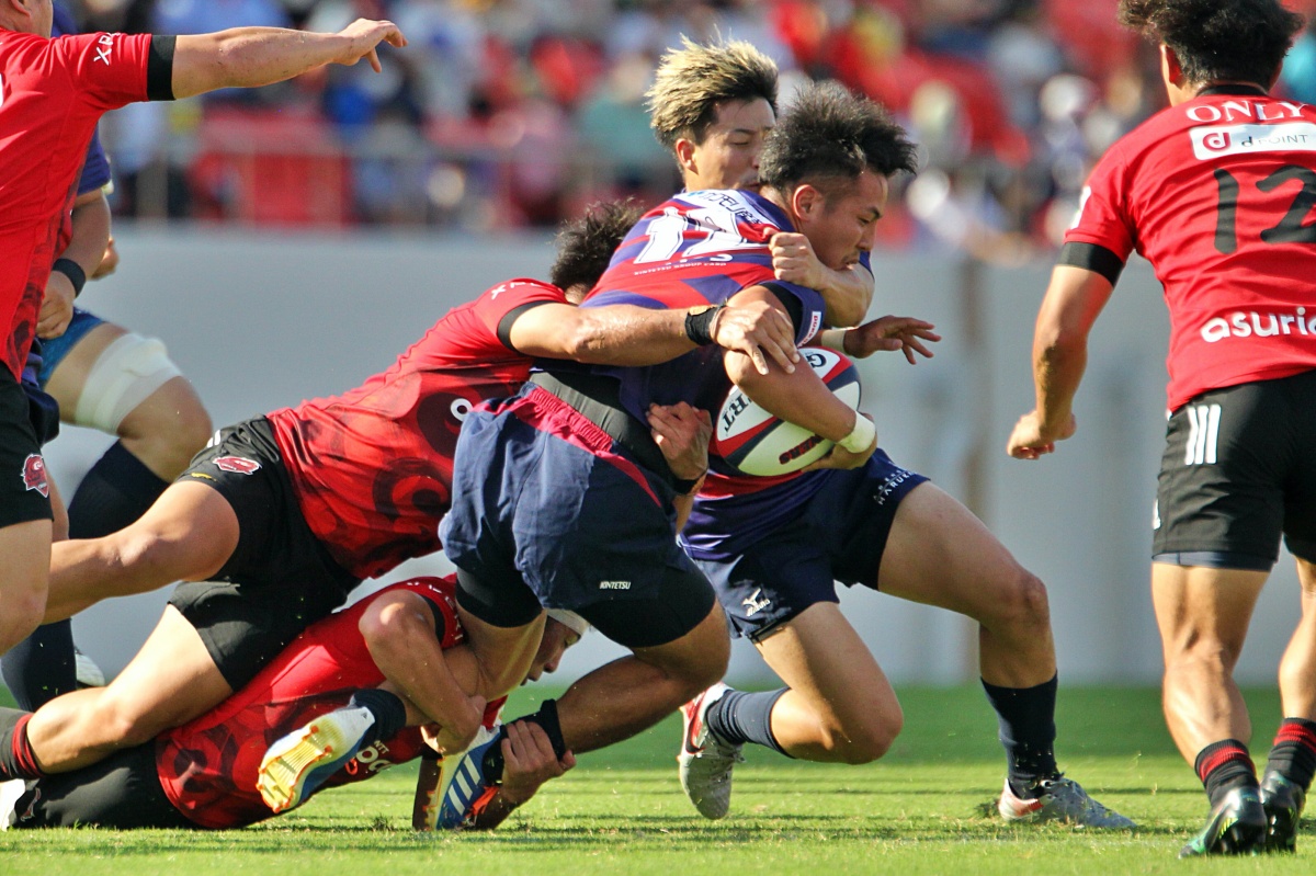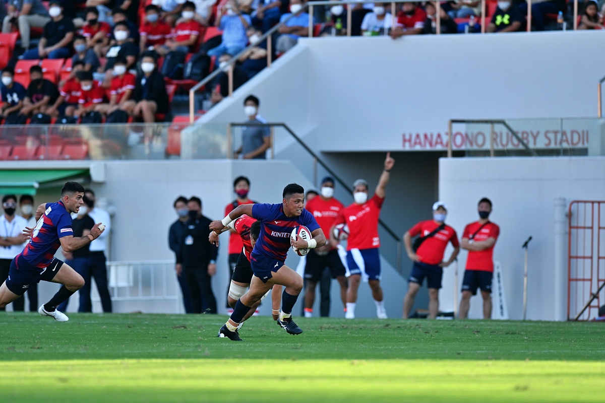 対戦相手はNTTドコモレッドハリケーンズ大阪。この日は花園ラグビーの日制定記念イベントの一環「Future star’s cup」として位置づけられ、約9000人のファンのみなさまに囲まれゲームに挑みました。