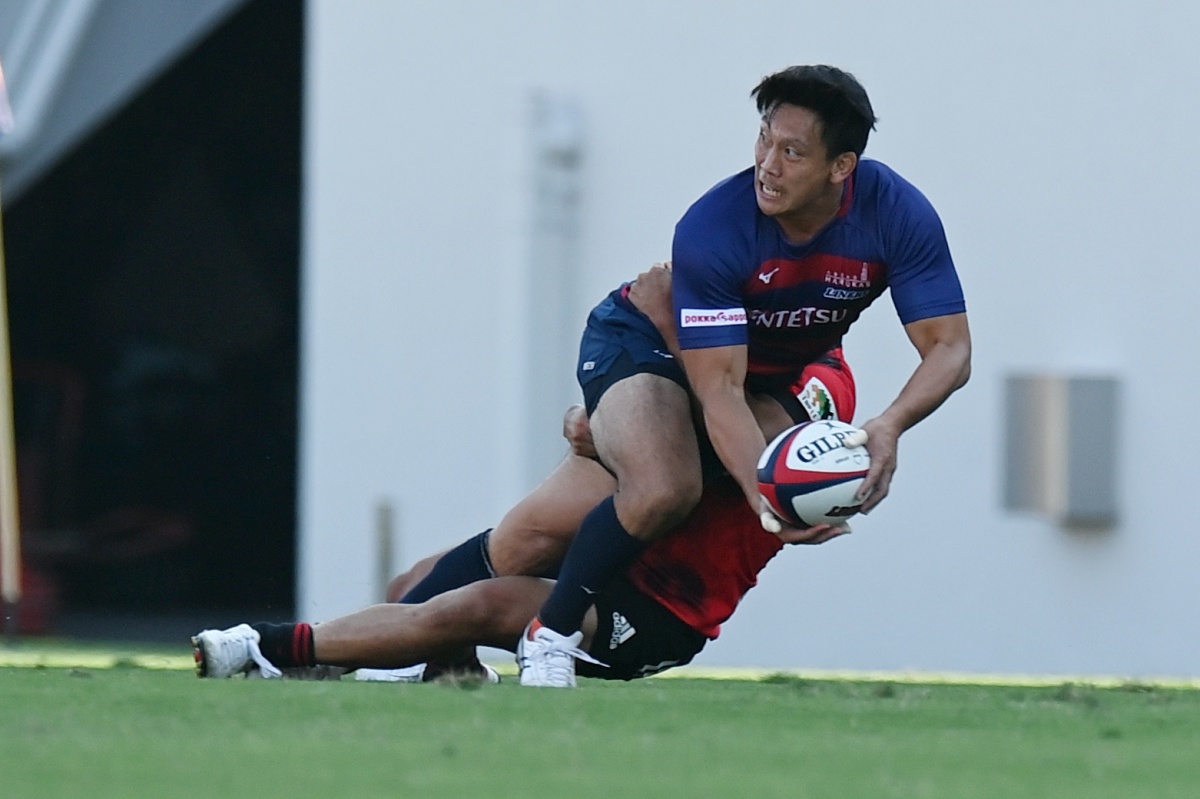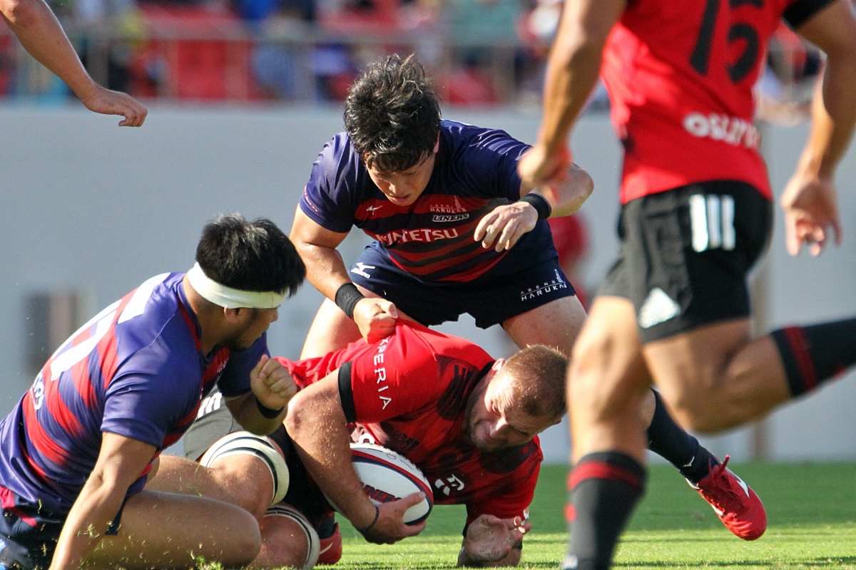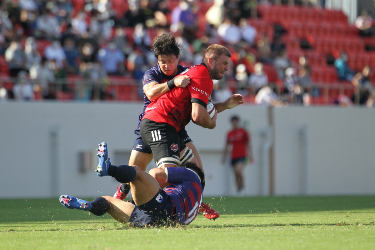 その後自陣でのディフェンス中、巧みに抜けられ1トライを献上しますが、すぐさま体制を立て直します。