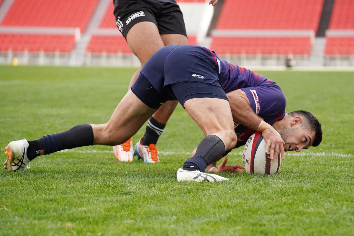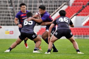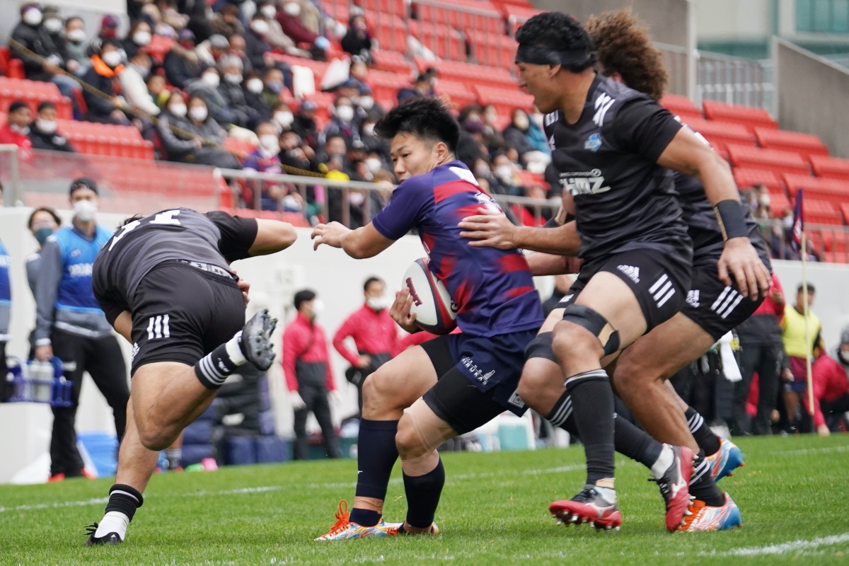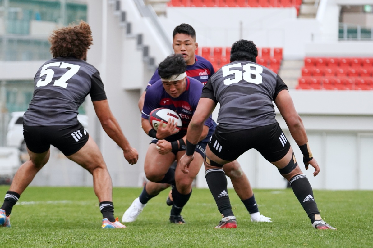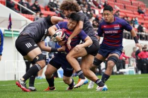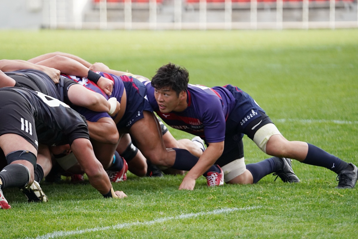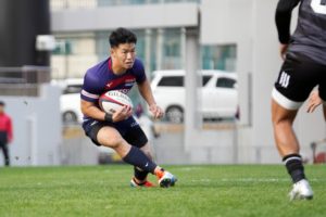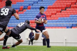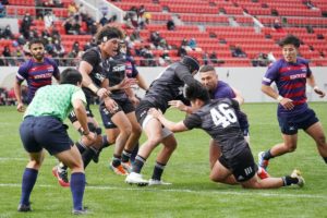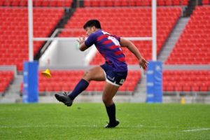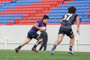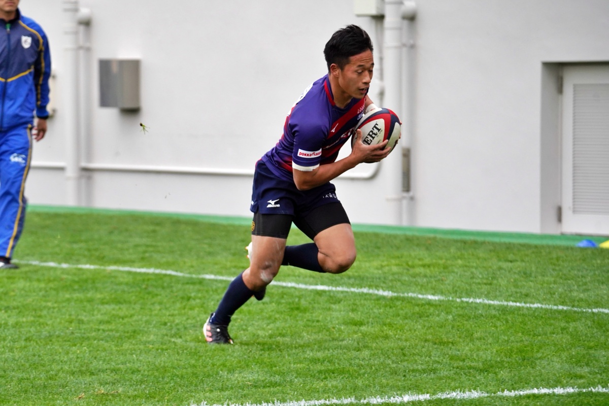ラストトライは後半終了間際。ハーフウェイラインから17佐々木がラインブレイクすると、相手のディフェンスが整わないうちにパスを回し、最後は28菅原がトライを決めます。