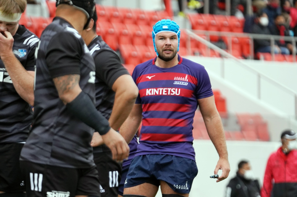自分たちのやりたいことにもう一度目を向け、コミュニケーションをとってゲームの主導権を握り始めた前半25分。ライナーズはゴール前中央に迫るとゲニア、クーパーと繋いでトライ。